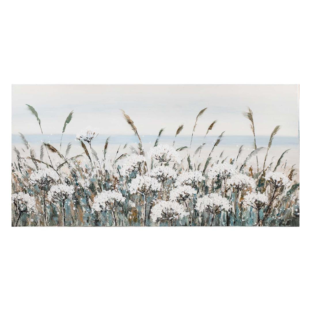 Öljyvärimaalaus 70x140cm, valkoinen kenttä kukkia