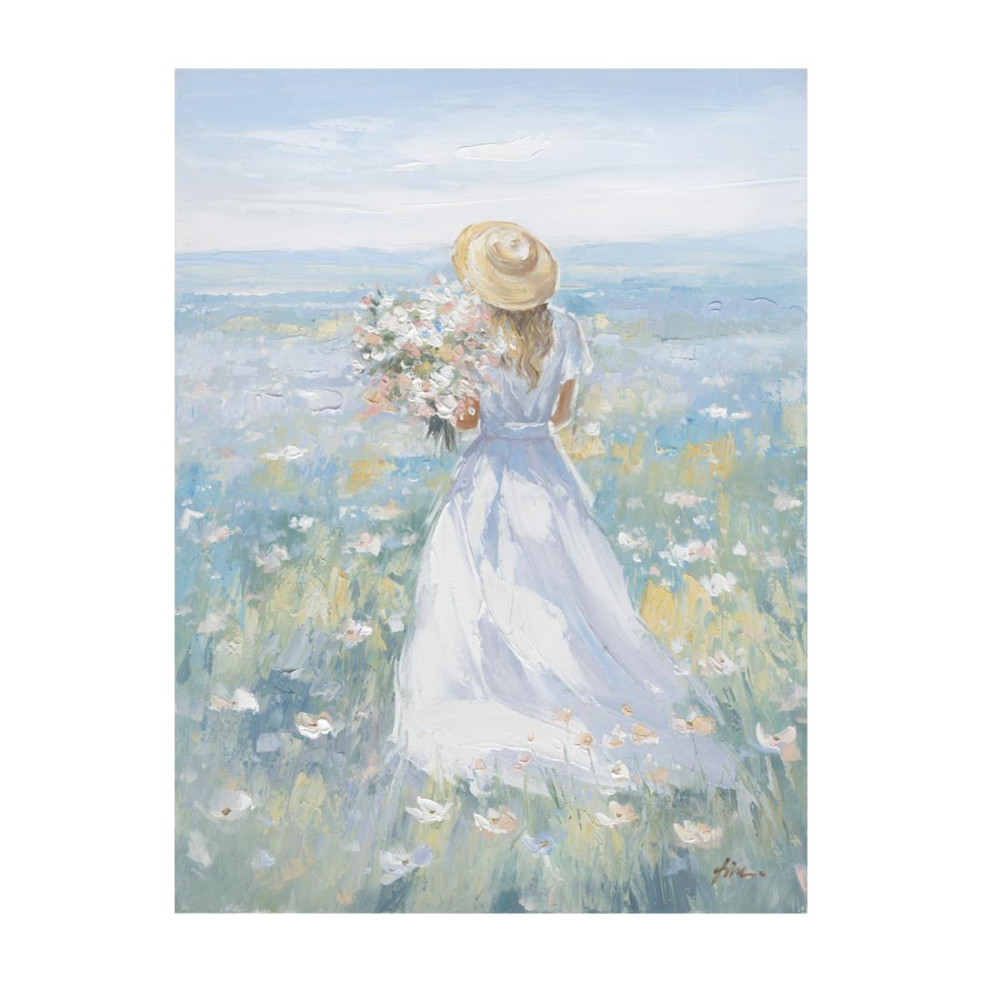 Öljyvärimaalaus 90x120cm, nainen niityllä