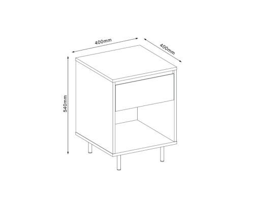 Yöpöytä/pöytä HERTA 1-laatikko 40x40xH54cm, valkoinen/vaalea puu.