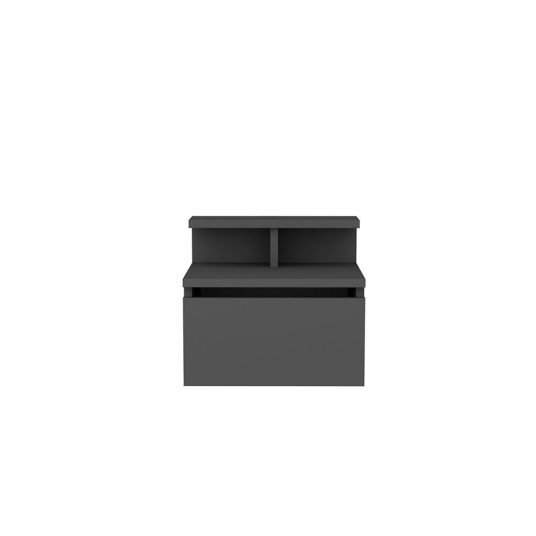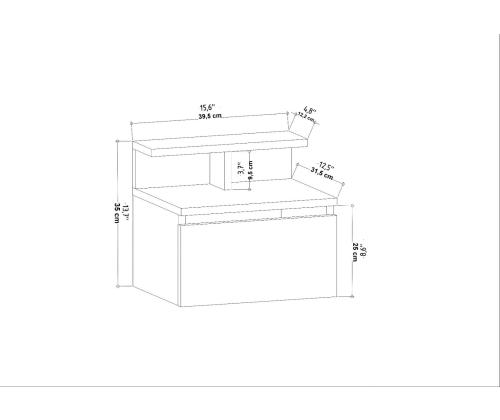 Made from 100% melamine coated particle board, this Nightstand is built to last. The 18mm thickness ensures sturdiness and stability, while the anthracite color adds a touch of contemporary charm. Its compact dimensions of 39.8cm in width, 31.9cm in depth, and 35cm in height make it the perfect fit for any bedroom size.