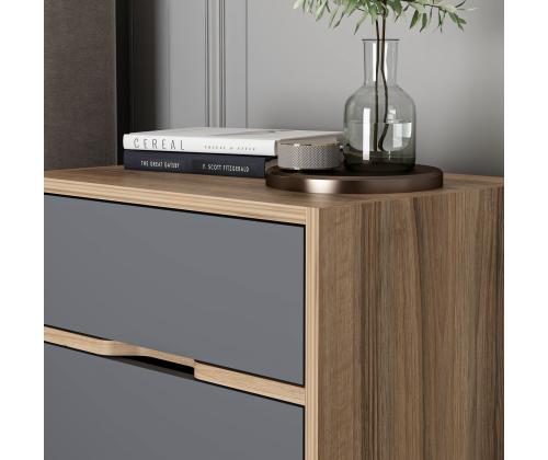 The combination of walnut and anthracite colors gives this nightstand a modern and sophisticated look. The sleek and minimalist design effortlessly blends with any bedroom decor, adding a touch of class to your personal space.
