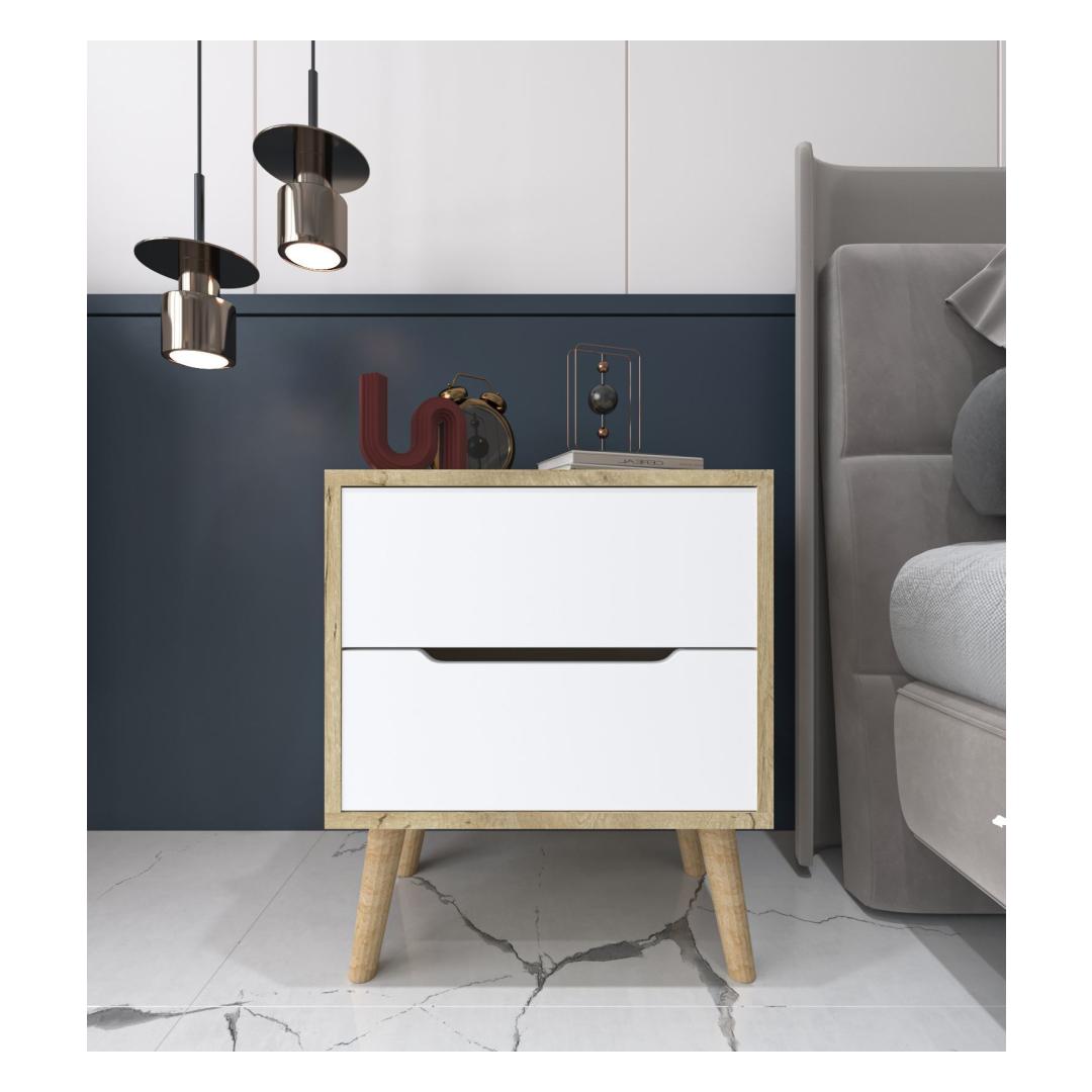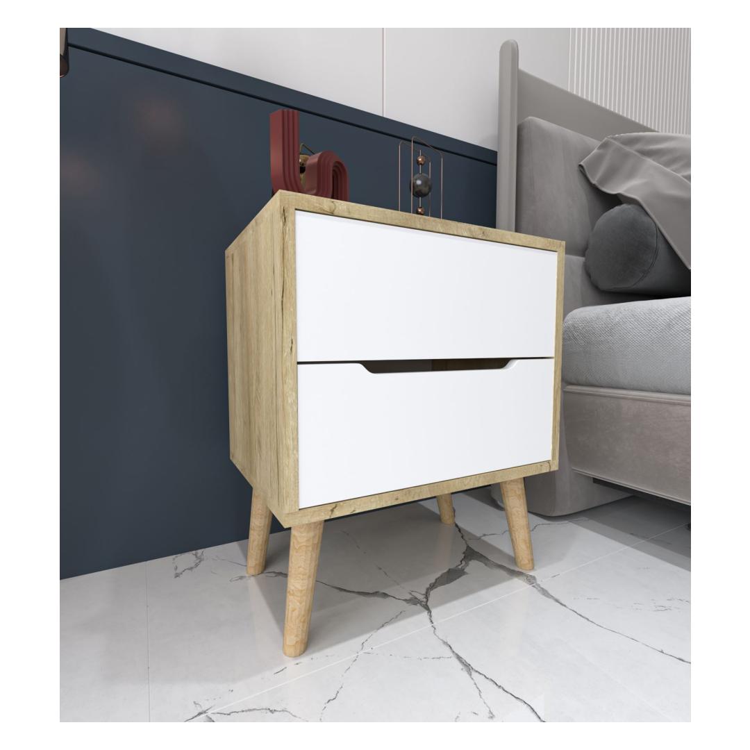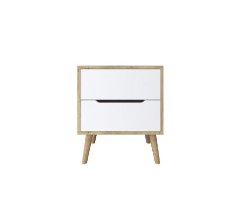 Transform your bedroom into a cozy sanctuary with our elegant nightstand. Crafted from 100% melamine coated chipboard, this nightstand exudes sophistication and durability. The sleek wooden legs elevate the design, adding a touch of modernity to your space.