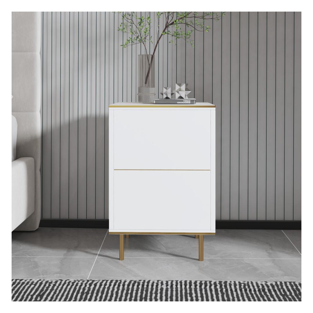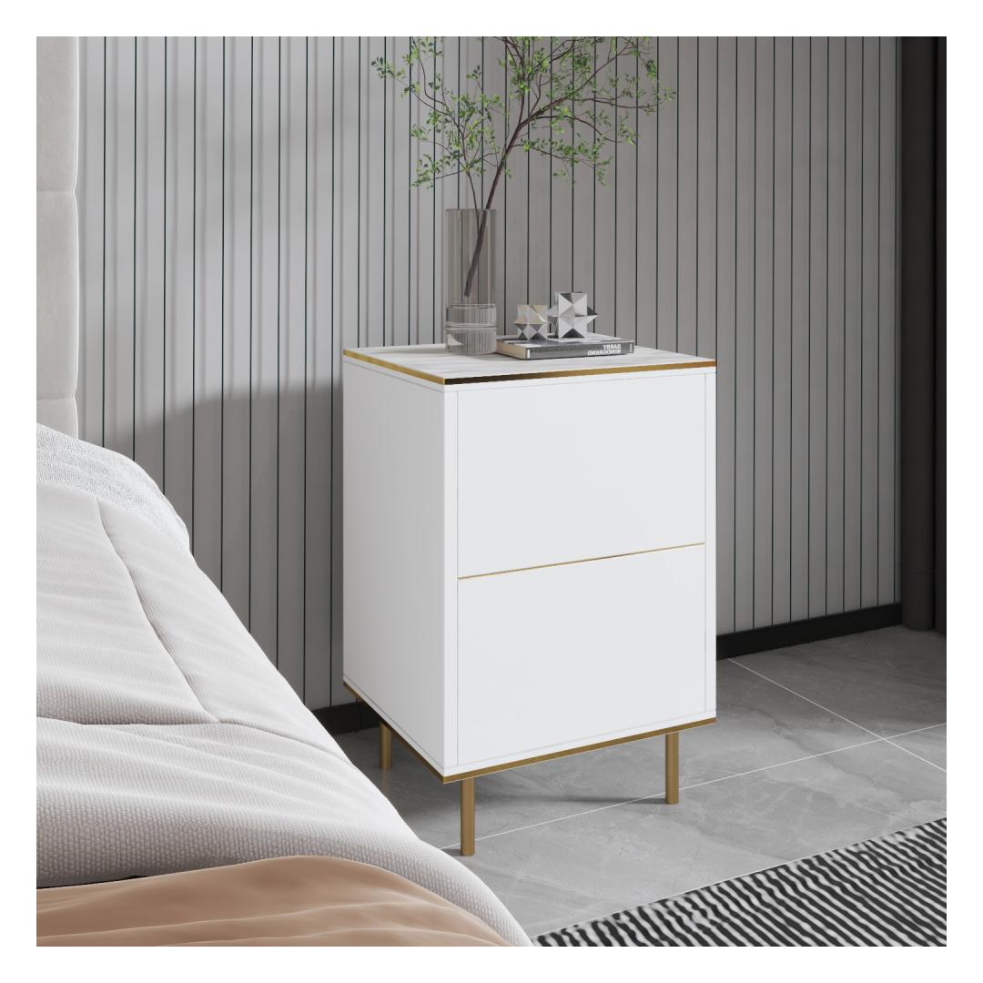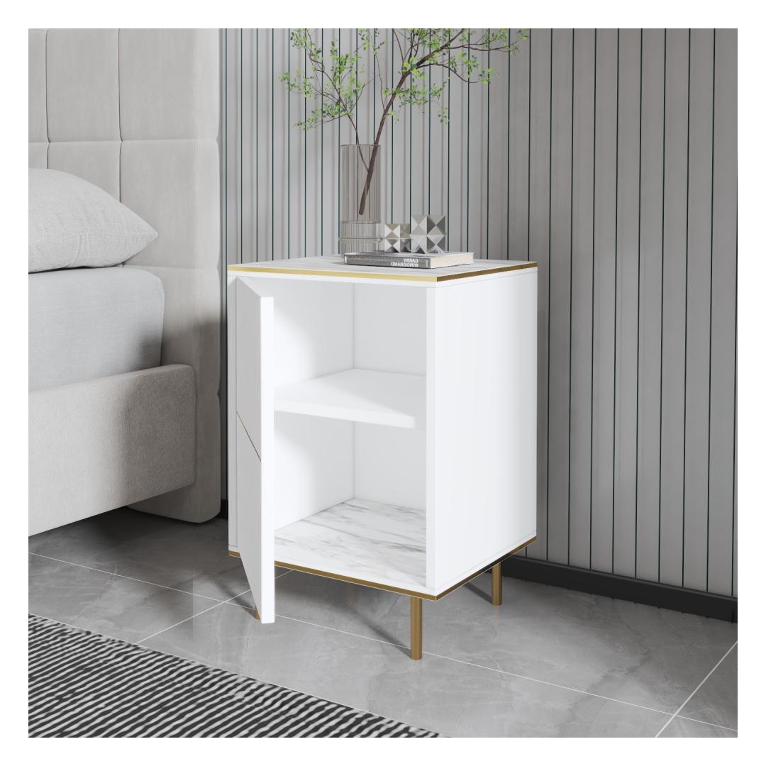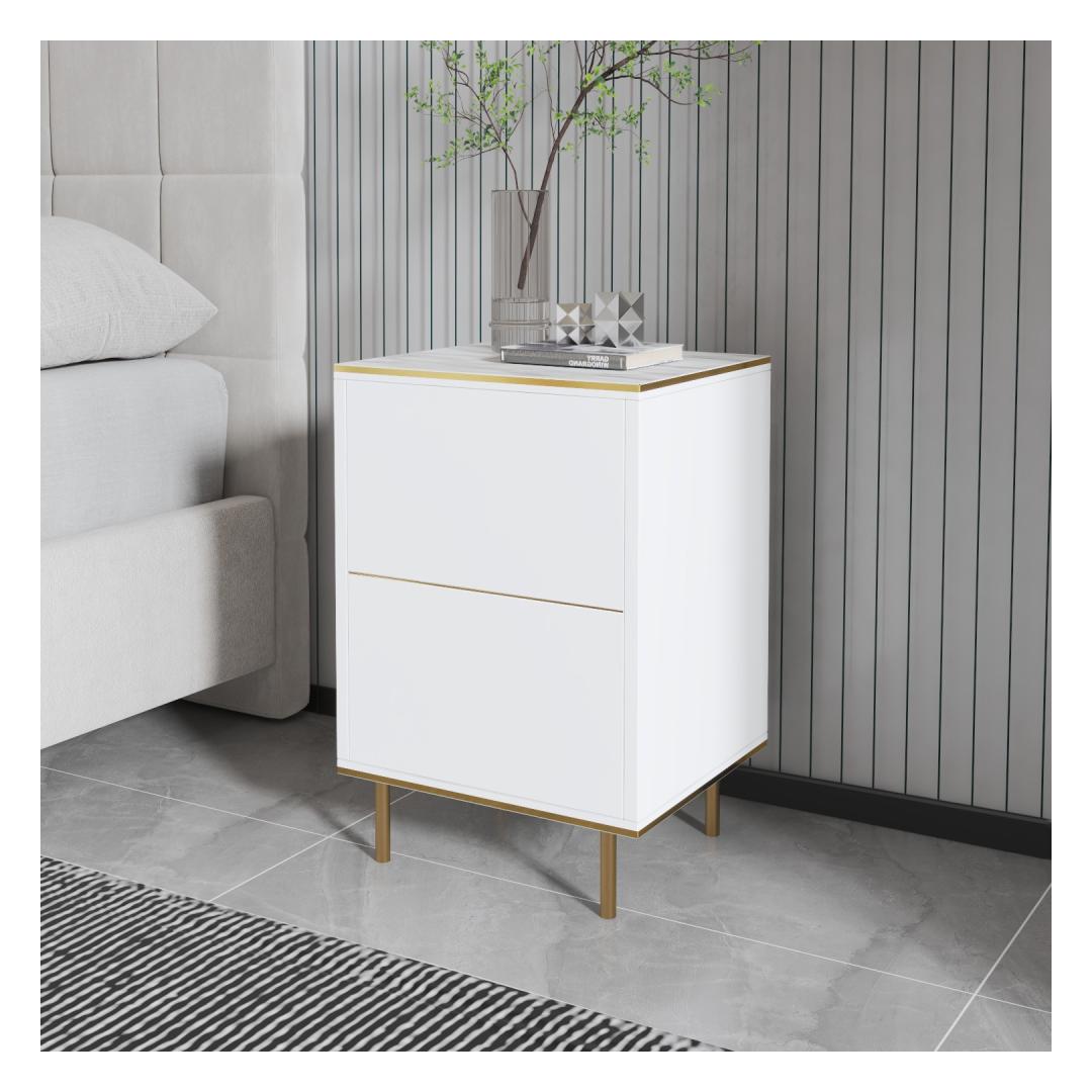 Transform your bedroom into a luxurious sanctuary with our stunning White Marble and Gold Nightstand. This elegant piece is not just a piece of furniture, but a statement of style and sophistication. The sleek design and beautiful color combination will instantly elevate the look of your bedroom, creating a space that is both functional and glamorous.
