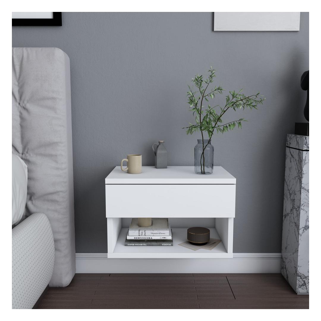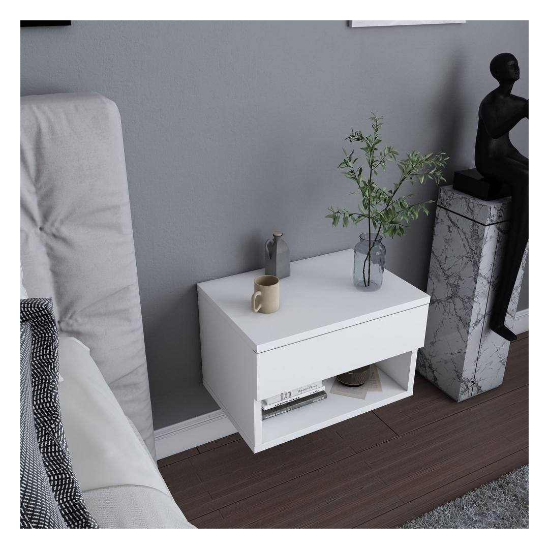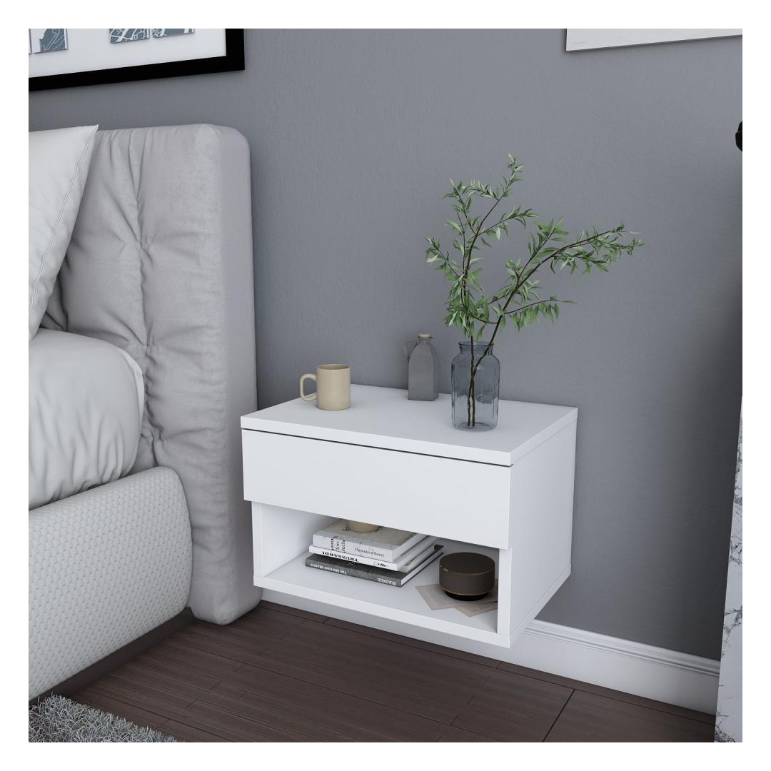 The nightstand features a beautiful white color, adding a touch of sophistication and elegance to your bedroom decor. The clean and minimalist design effortlessly complements any color scheme, creating a serene and inviting atmosphere.