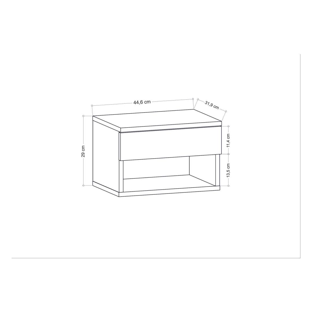 With a width of 44.6cm, depth of 29cm, and height of 31.9cm, our nightstand is designed to fit seamlessly into any bedroom space. Its compact size allows for easy placement, making it ideal for smaller rooms or as an additional piece alongside your existing furniture.