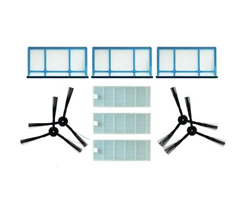 - Kolme suodatinpäätä, kolme suodatinpäätä, kolme suodatinpäätä, kolme suodatinpäätä, kolme suodatinpäätä, kolme suodatinpäätä, kolme suodatinpäätä - Pakkaus sisältää: kolme pienhiukkassuodatinta, neljä sivuharjaa (kaksi paria), kolme pääsuodatinta