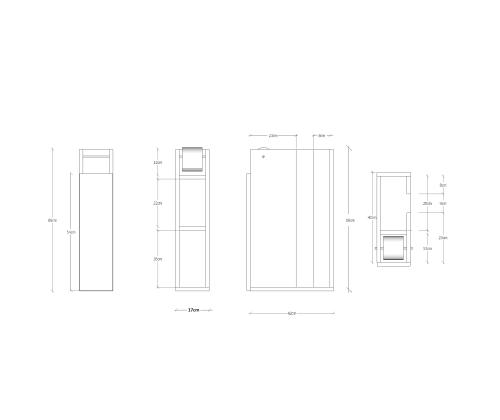 Width: 42 cm Height: 66 cm Depth: 17 cm