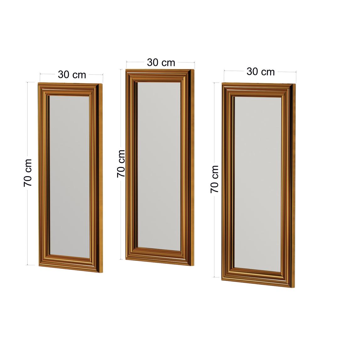 Paranna kotisi kauneutta tällä upealla peilisarjallaMuuta asuintilasi tyylikkääksi ja hienostuneeksi tilaksi tällä upealla peilisarjalla. Tämä kolmen peilin setti on valmistettu äärimmäisen huolellisesti ja huolellisesti, jotta se tuo loistoa mihin tahansa huoneeseen. Koe vertaansa vailla oleva laatu ja kestävyysNämä peilit on valmistettu 100 % mdf-levystä ja ne on rakennettu kestämään. Laminoidut kehykset eivät ainoastaan paranna peilien kestävyyttä, vaan myös lisäävät peilien ylellisyyttä kirkkaan kultaisella viimeistelyllä. Pukeutumispeilin muotoilu sopii täydellisesti lisäämään ylellisyyttä makuuhuoneeseen tai vaatehuoneeseen. Luo illuusio tilasta ja valostaNämä peilit ovat 30 cm leveät, 70 cm korkeat ja 3 cm syvät, eli täydellisen kokoiset luomaan illuusion suuremmasta huoneesta. Ekologinen flotal-e-peili tarjoaa poikkeuksellisen kirkkauden ja heijastuksen, joten voit nauttia kristallinkirkkaasta kuvasta joka kerta, kun katsot siihen. Valvottu ja helppo asentaaHaluatpa sitten ripustaa ne olohuoneeseen, makuuhuoneeseen tai eteiseen, nämä peilit voidaan helposti asentaa seinälle, mikä lisää tyylikkyyttä mihin tahansa huoneeseen. Kehysten kultainen väri tuo ylellisen kosketuksen, joka sopii mihin tahansa sisustukseen. Tekniset tiedot: Tuotetyyppi: Tyyppi: Peilisarja (3 kpl)Kehysmateriaali: Peilimateriaali: Kultainen kehys: laminoitu, vaalean kullanvärinenpeilin tyyppi: Peilin mitat: Leveys: 30 cm, Korkeus: 70 cm, Syvyys: 3 cm.Peilimateriaali: Ekologinen Flotal-E-peiliSeinään kiinnitettävä: KylläVäri: Kulta Väri: Kulta