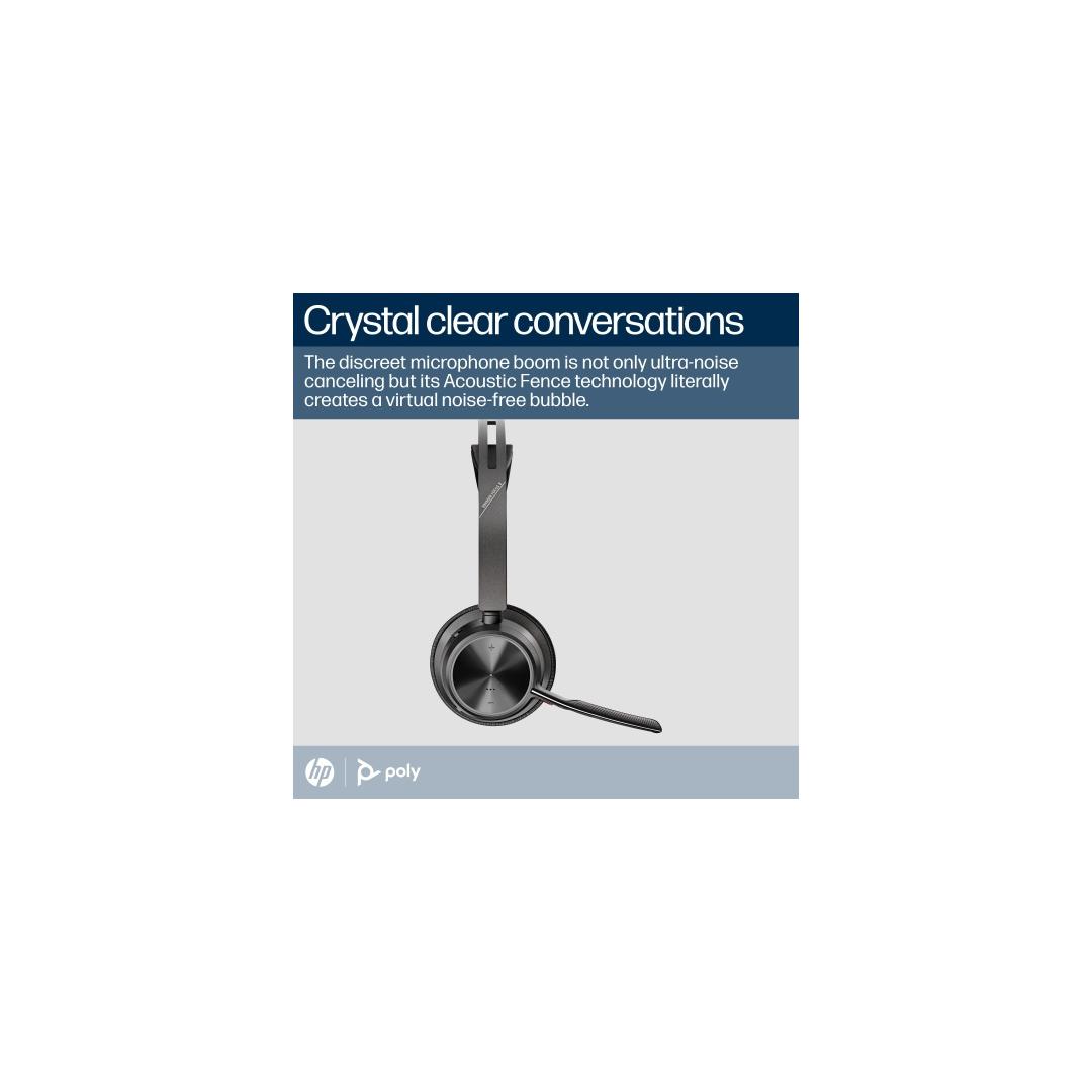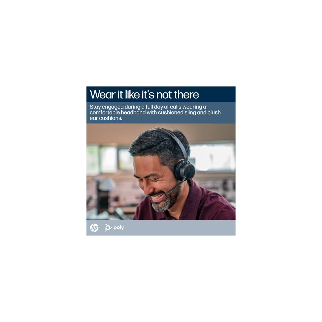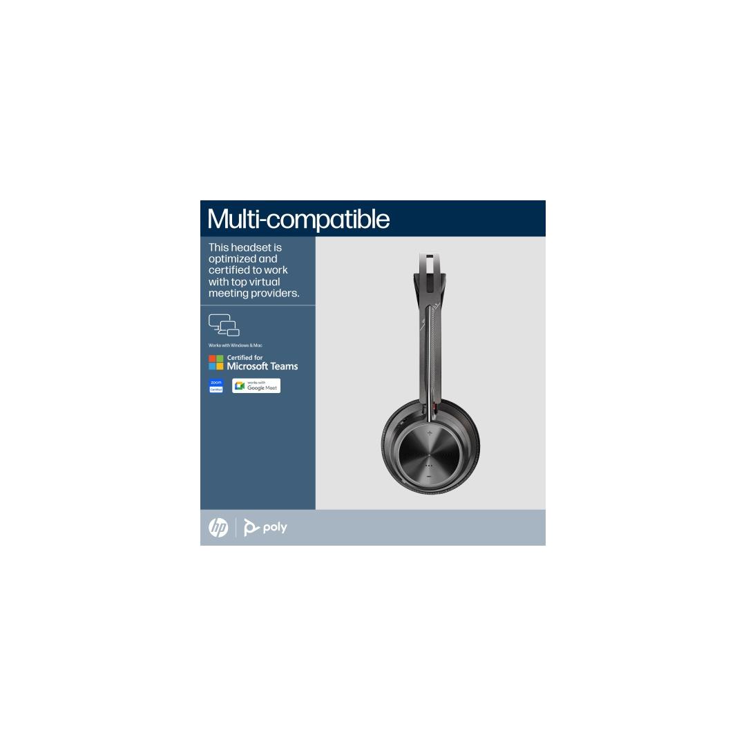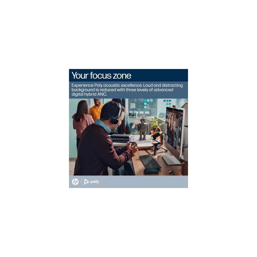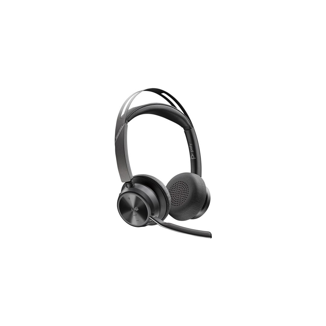 Poly Voyager Focus 2 MS Teams Langattomat kuulokkeet, Bluetooth, USB-C/A-sovitin, latausteline, musta