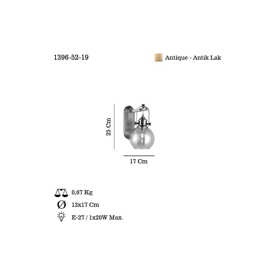 Valaise tilasi tällä upealla seinävalaisimella, joka huokuu eleganssia ja hienostuneisuutta. Valaisimen metallirunko tuo valaisimeen ripauksen nykyaikaisuutta, kun taas lasikorkki antaa pehmeän, lämpimän hehkun, joka luo viihtyisän tunnelman mihin tahansa huoneeseen.Tyylikäs muotoilu Tämän seinävalaisimen tyylikäs muotoilu kohottaa huoneesi ilmettä välittömästi. Antiikkinen väri lisää vintage-viehätystä, mikä tekee siitä monipuolisen kappaleen, joka sopii mihin tahansa sisustustyyliin. lämmin ja kutsuva hehku Valaisimen lasikorkki hajottaa valoa kauniisti ja luo lämpimän ja kutsuvan tunnelman kotiisi. Sijoititpa sen olohuoneeseen, makuuhuoneeseen tai eteiseen, tämä seinävalaisin lisää tyylikkyyttä mihin tahansa huoneeseen. Helppo asentaa Pohjalevyn koko on 9 x 20 x 2,5 cm, joten tämä seinävalaisin on helppo asentaa ja muuttaa huoneesi ilmeen välittömästi. Kiinnitä se vain seinään ja nauti sen lähettämästä pehmeästä ja rauhoittavasta valosta. Tekniset tiedot Väri: Antiquation