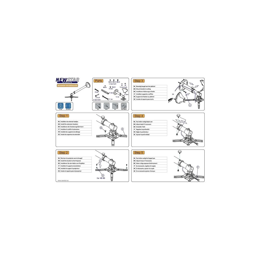 Maksimipaino 12 kg Tämän yleispätevän NewStar-projektorin seinäkiinnikkeen, malli BEAMER-W100SILVER, avulla voit kiinnittää projektorin/projektorin mihin tahansa seinään.