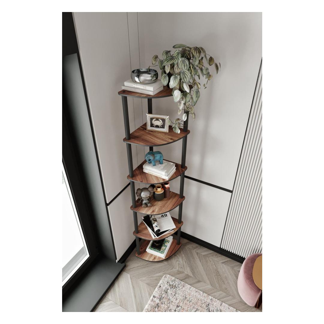 Add a touch of sophistication and elegance to your home with this modern and innovative bookshelf. The rich Walnut color adds warmth and depth to any room, while the industrial design brings a unique and contemporary flair to your decor.