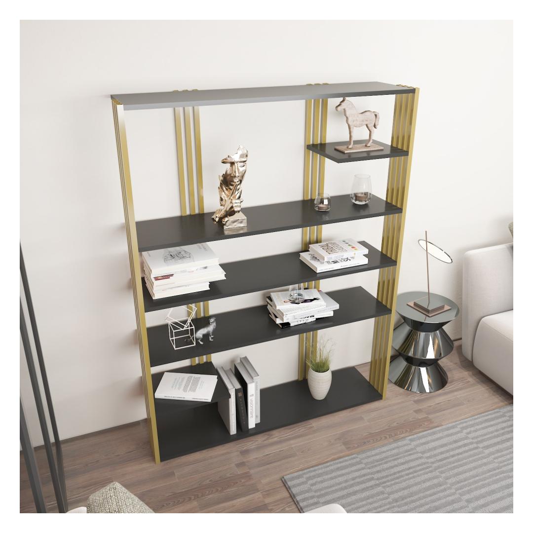 Transformeeri oma ruum elegantselt ja stiilseltTutvustame meie peenetundelist raamaturiiulit, mis on tõeline meistriteos, mis tõstab iga ruumi atmosfääri. See ülima täpsusega ja detailidele tähelepanu pöörates valmistatud raamaturiiul on loodud nii, et see tooks teie ruumi nii funktsionaalsust kui ka ilu. Vabastage oma loovusOma elegantse ja moodsa disainiga on see raamaturiiul ideaalne täiendus igasse kaasaegsesse koju. Antratsiidi ja kuldse värvi kombinatsioon lisab rafineeritust ja elegantsi, muutes selle väljapaistvaks esemeks, mis avaldab kindlasti muljet teie külalistele.Organiseeri oma raamatud stiilseltÜtle hüvasti segastele riiulitele ja tere hästi organiseeritud kollektsioonile. See raamaturiiul pakub rohkelt hoiuruumi, mis võimaldab teil oma lemmikraamatuid, dekoratiivseid esemeid ja kallihinnalisi mälestusi esitleda. Selle tugev konstruktsioon tagab, et teie väärtuslikud asjad on turvaliselt välja pandud aastateks. Kvaliteet, mis kestabMe usume, et pakume oma klientidele ainult parimat. Seepärast on meie raamaturiiul valmistatud 100% melamiiniga kaetud puitlaastplaadist, mis tagab vastupidavuse ja pikaealisuse. 18 mm paksus lisab sellele tugevust, muutes selle usaldusväärseks mööbliesemeks, mis peab vastu aja katsumusele. Tehnilised üksikasjad:Materjal: Materjal: Materjal: Materjal: Materjal: Materjal: Materjal: Materjal: materjal: 100% melamiiniga kaetud puitlaastplaatPaksus: 18mmLaius: 120cmKõrgus: 160cmSügavus: 29,6cmVärv: Antratsiit ja kuldMuutke oma eluruum meie uimastava raamaturiiuliga ja kogege täiuslik segu funktsionaalsusest ja elegantsist. Ärge jätke kasutamata seda võimalust, et muuta oma kodu stiili ja rafineerituse paradiisiks. Tellige kohe ja laske oma raamatutel leida oma õige koht tõeliselt tähelepanuväärses mööbliesemes. Värv: Anthracite Gold
