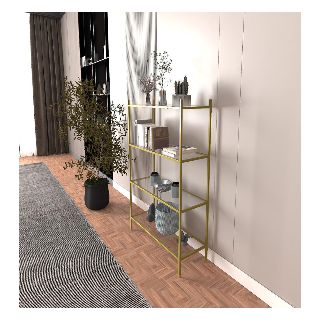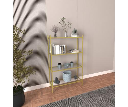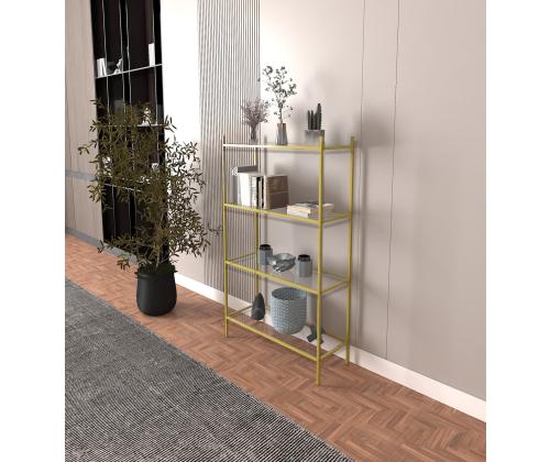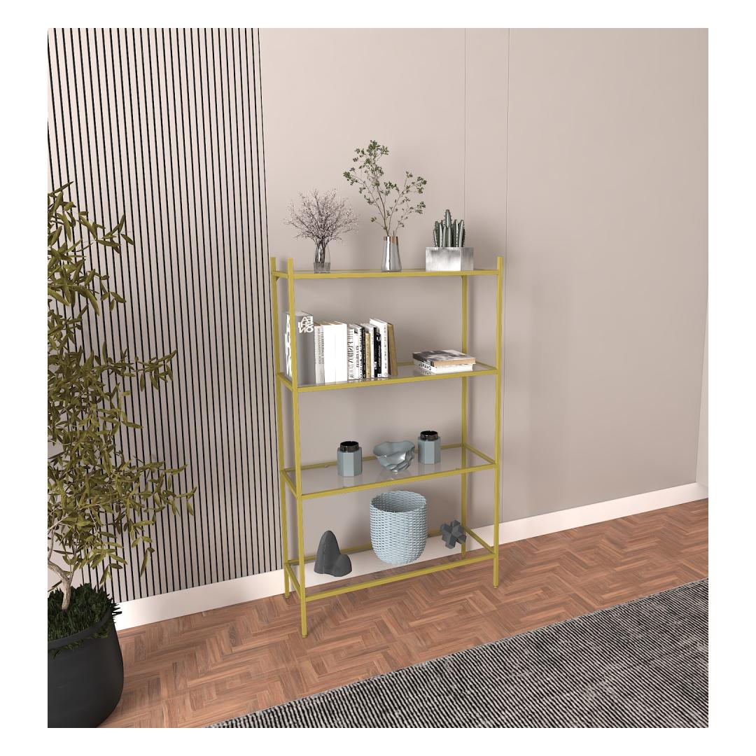 Imagine walking into your living room and being greeted by this exquisite bookshelf, gleaming with sophistication. Its gold metal legs add a touch of luxury, while the 4mm thick tempered glass shelves provide a sturdy and durable platform for your books, decor, and cherished belongings.