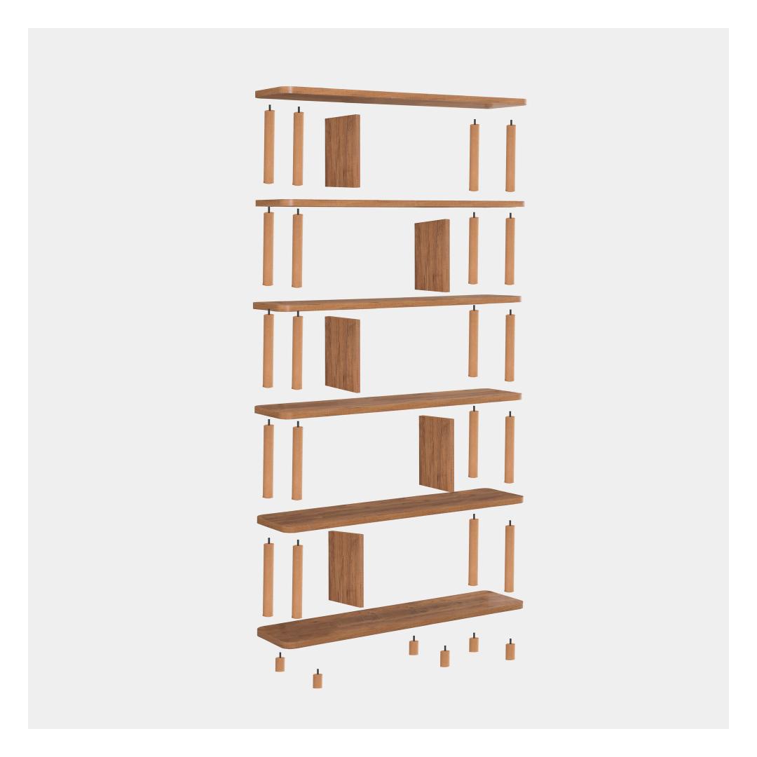 Crafted from 100% melamine coated particle board with a thickness of 25 mm, this bookshelf is not only durable and long-lasting, but also easy to clean and maintain. The legs and columns are made from 100% hornbeam, ensuring stability and strength for all your favorite books and decorative items.