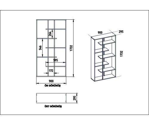 Bookshelf Size: Width: 90 cm Height: 173,2 cm Depth: 29,5 cm