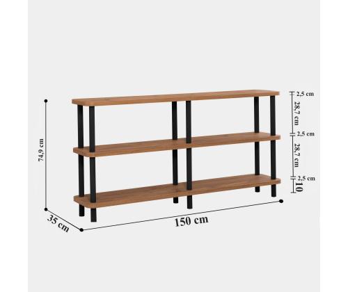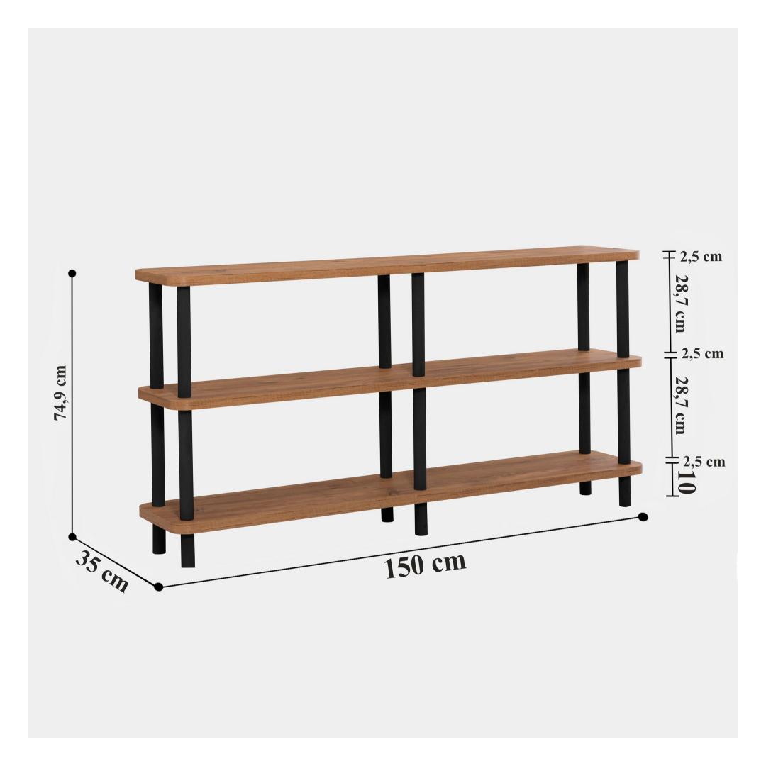With a width of 150cm, height of 74.9cm, and depth of 35cm, our bookshelf provides ample space for all your books, decor, and more. The shelf height of 28.7cm allows you to showcase items of various sizes, while the leg height of 10cm adds a touch of elegance.