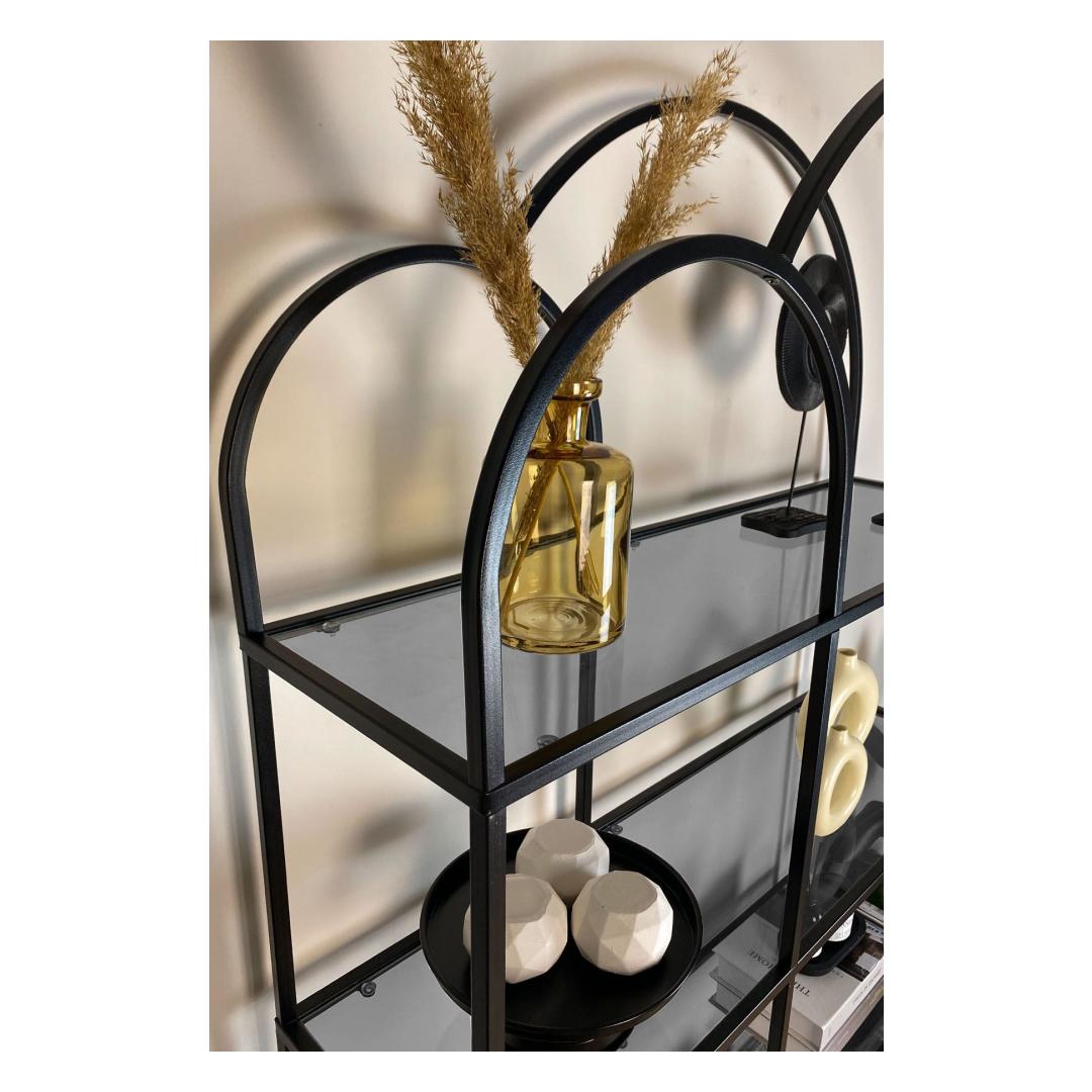 The combination of black and fume colors gives this bookshelf a contemporary edge that will elevate any room in your home. The 4mm tempered smoked glass shelves provide a luxurious touch, while the metal frame ensures durability and stability. With a width of 100cm, height of 175cm, and depth of 30cm, this bookshelf offers ample space for all your favorite books and decorative items.