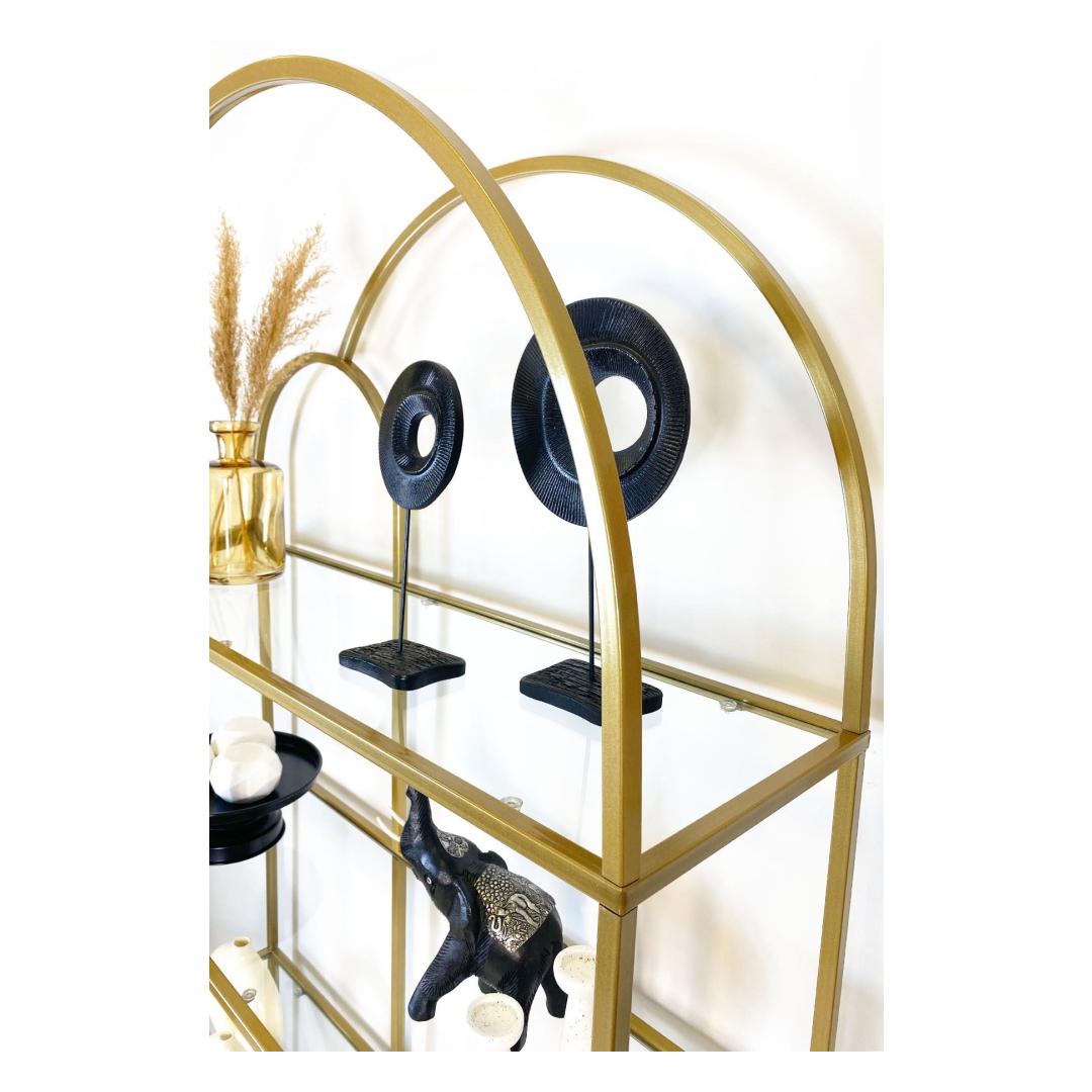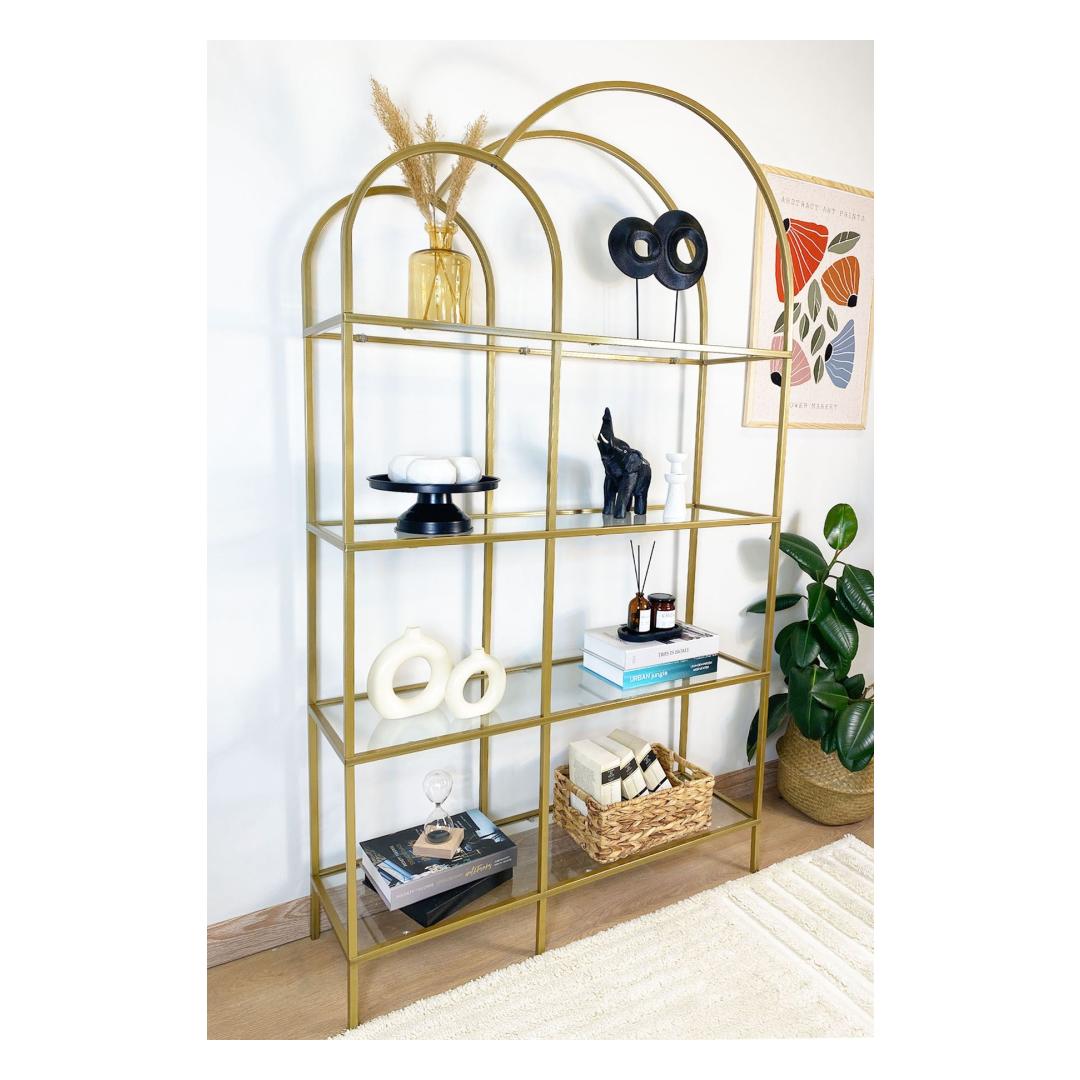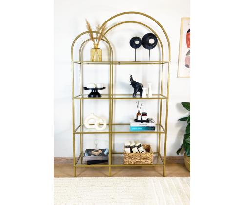 Add a touch of luxury to your home with this sleek and stylish bookshelf. The combination of gold and transparent colors creates a chic and contemporary look that will impress your guests and make a statement in any room.