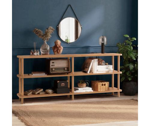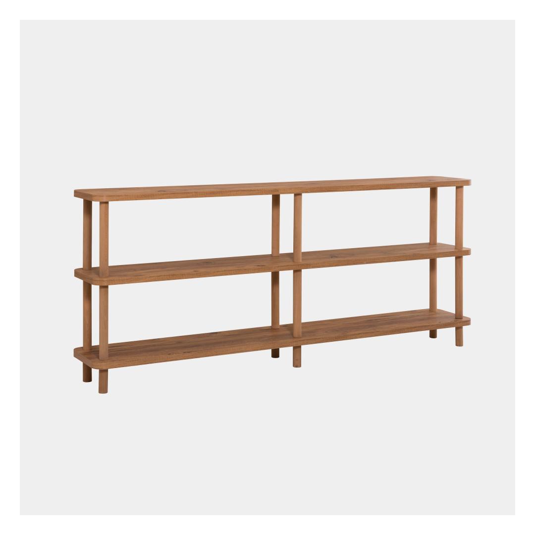 The Atlantic Pine Bookshelf is made from 100% melamine coated particle board, ensuring durability and longevity. The 25mm thickness adds to its sturdiness, while the legs and columns made from 100% hornbeam provide stability and support. With a width of 180cm, height of 74.9cm, and depth of 35cm, this bookshelf offers ample storage space for all your favorite books and decorative items.