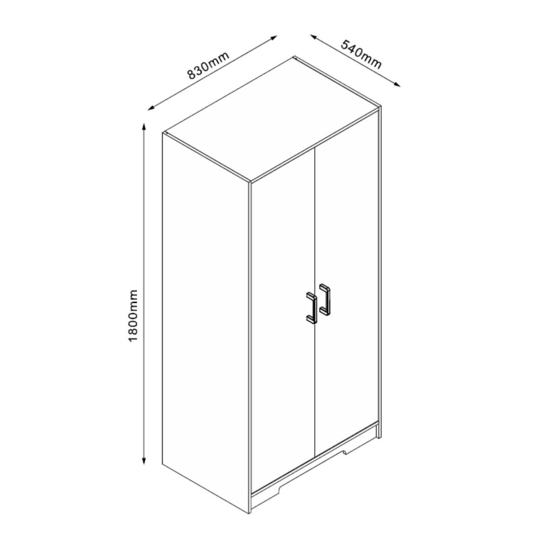 Melamiinipinta, polyuretaani, väri: musta. Vaatekaappi LAVINIA 2 ovella 83x54xH180cm, saarni.