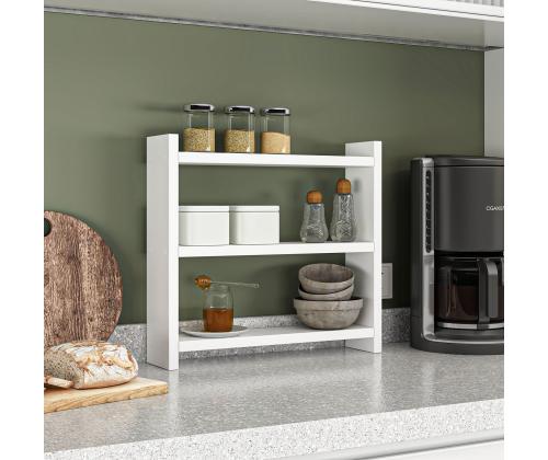 With its modern design and clean lines, this Kitchen Shelf will instantly elevate the look of your kitchen. The crisp white color will blend seamlessly with any decor, giving your space a fresh and polished feel.