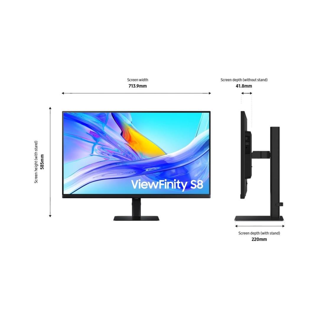SAMSUNG Viewfinity S8 S80UD 32 tuuman näyttö UHD 16:9 3840x2160 VA 5ms HDR10 sRGB HAS Swivel Pivot HDMI DP USB-C 90W LAN USB3Hub KVM