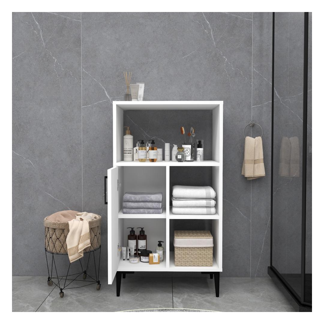 The cabinet features numerous shelves for easy organization, and can even be fixed to the wall for added stability. The 15cm legs provide extra support and make cleaning underneath a breeze.