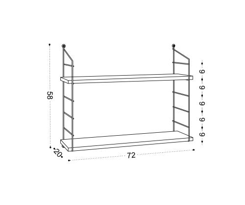 With a thickness of 18 mm and dimensions of 72 cm in width, 58 cm in height, and 20 cm in depth, this wall shelf offers plenty of space to showcase your favorite books, decorative items, or even plants. Its versatile design makes it suitable for any room, whether it's your living room, bedroom, or office.