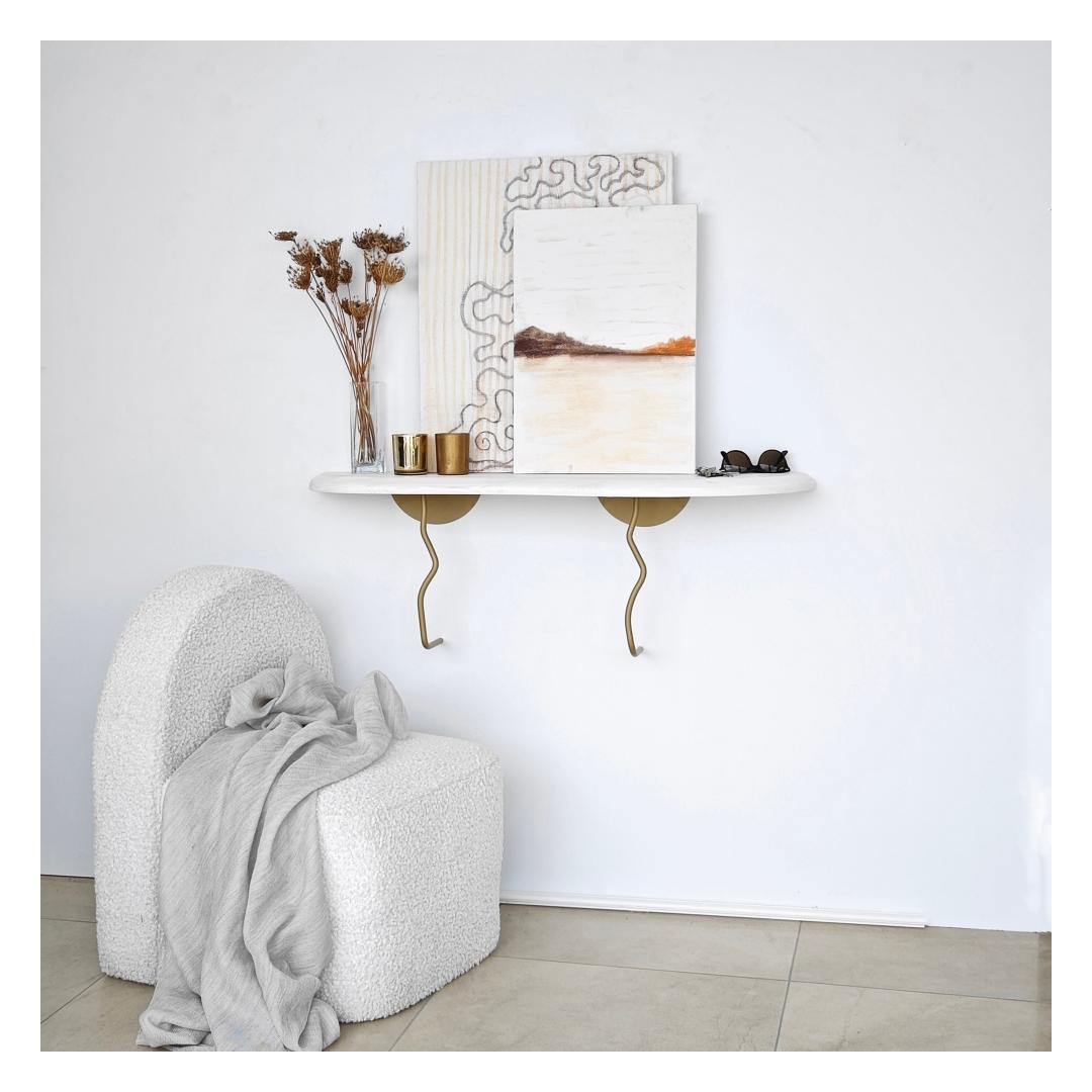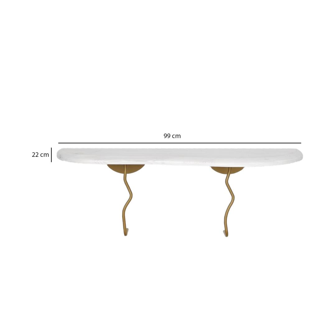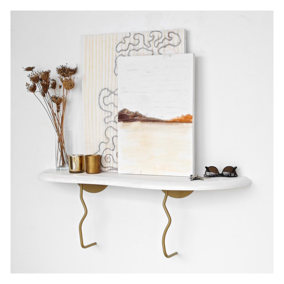 Muuda oma eluruum meie kauni seinalehega, mis on valmistatud 100% männipuidust ja raamitud vastupidava metalliga. Elegantne kuldse ja valge värvi kombinatsioon lisab igasse ruumi peenust, muutes selle ideaalseks lisandiks sinu kodu sisustusse.Tõsta oma kodu sisustusLisa oma eluruumile elegantsi ja stiili meie kaunilt disainitud seinalehega. Unikaalne männipuidu ja metallraami kombinatsioon loob modernse ja šiki ilme, mis tõstab koheselt sinu kodu sisustust.Mitmekülgne ja funktsionaalne99 cm laiuse ja 22 cm sügavusega seinaleht pakub piisavalt ruumi sinu lemmikdekoreerimise, fotode või taimede eksponeerimiseks. Olgu see elutoas, magamistoas või koridoris, see riiul kindlasti tõmbab tähelepanu igas ruumis.Kestlik ja tugevValmistatud kvaliteetsetest materjalidest, on see seinaleht loodud kestma. 100% männipuidust riiulid on tugevad ja vastupidavad, samas kui metallraam lisab stabiilsust ja tuge. Sa võid olla kindel, et see riiul hoiab sinu esemeid turvaliselt aastaid.Tehnilised andmed:Tootetüüp: SeinalehtMaterjal: 100% männipuit, 100% metallraamMõõtmed: Laius 99 cm, Sügavus 22 cmVärv: Kuldne ja valge Värv: Gold White