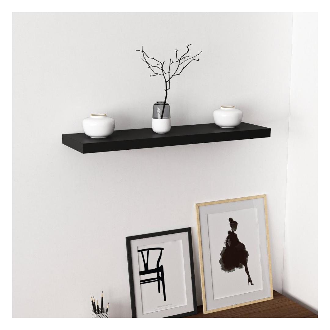 Muunna tilasi tyylikkäällä ja toimivalla seinähyllyllä Esittelyssä upea seinähyllymme, joka kohottaa välittömästi minkä tahansa huoneen ilmettä kodissasi. Tyylikkään muotoilunsa ja monipuolisen toiminnallisuutensa ansiosta tämä hylly on ehdoton hankinta niille, jotka kaipaavat sekä tyyliä että organisointia. Luo silmiinpistävä visuaalinen vaikutusHylly on taidokkaasti valmistettu 100 % melamiinipinnoitetusta lastulevystä kestävyyden ja pitkäikäisyyden takaamiseksi. Sen 18 mm:n paksuus lisää vahvuutta, joten voit olla varma, että tavarasi ovat turvallisesti paikoillaan. Musta väri lisää eleganssia ja hienostuneisuutta, joten se on täydellinen lisä mihin tahansa moderniin tai nykyaikaiseen huoneeseen.Maksimoi säilytystilasiTämä 80 cm leveä, 3,6 cm korkea ja 23 cm syvä seinähylly tarjoaa runsaasti tilaa suosikkikirjojesi, valokuvien tai koriste-esineiden esillepanoon. Tyylikkään muotoilunsa ansiosta se sopii saumattomasti mihin tahansa huoneeseen, olipa kyseessä olohuone, makuuhuone tai toimisto. Helppo asentaa ja huoltaaTämä seinähylly on helppo asentaa käyttäjäystävällisen suunnittelunsa ansiosta. Sen mukana toimitetaan kaikki tarvittavat tarvikkeet, joten asennus on nopeaa ja vaivatonta. Lisäksi melamiinipinnoitteen ansiosta se on helppo puhdistaa ja huoltaa, mikä takaa, että se näyttää yhtä hyvältä kuin uusi vuosien ajan. Tekniset tiedot: Tuotetyyppi. Tilaa nyt ja koe täydellinen yhdistelmä eleganssia ja organisointia kotiisi! Väri: Musta
