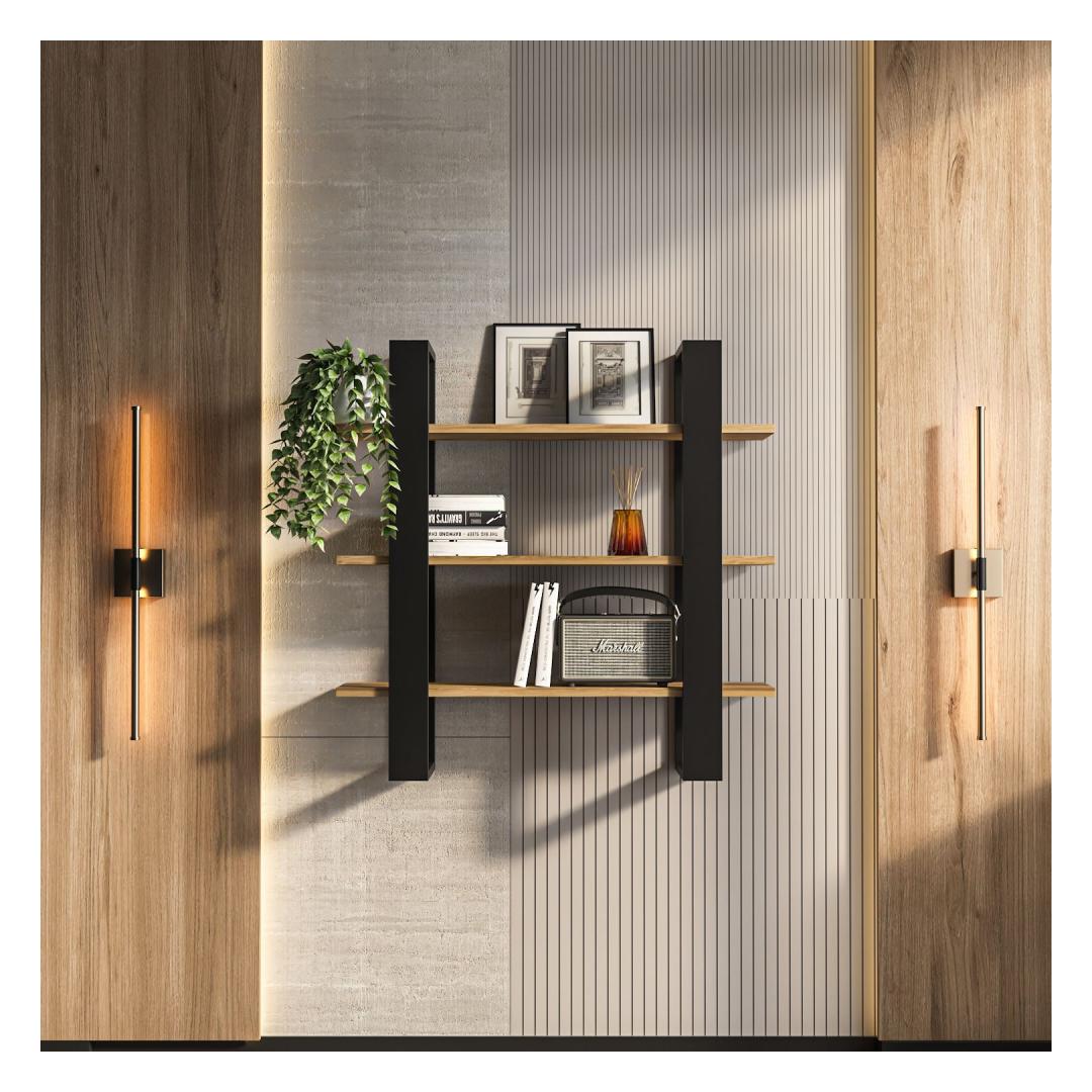 Muuda oma eluruum meie kauni seinalehega, mis on valmistatud 100% melamiinkattega puitlaastplaadist, et tagada vastupidavus ja stiil. Sujuv disain ja kaasaegne värvikombinatsioon musta ja Oud tamme toonides tõstavad koheselt iga ruumi teie kodus.Tõsta oma ruumiÜtle hüvasti segadusele ja tere korraldusele meie avara seinalehega. Näita oma lemmikraamatuid, fotosid ja dekoratiivesemeid kergelt, luues isikupärase ja stiilse keskpunkti igas toas.Kvaliteetne käsitöö18 mm paksusega konstruktsiooniga on see seinaleht loodud kestma ja ajaproovile vastu pidama. Tugev disain tagab, et teie asjad on turvalised ja kaitstud, andes teile meelerahu, samal ajal kui see lisab teie kodu dekoreerimisele elegantsi.Lihtne paigaldadaLihtsate kokkupaneku juhiste ja kõigi vajalike kinnitusdetailidega on teie uue seinalehe paigaldamine imelihtne. Muuda oma ruumi minutitega ja naudi kauni korraldatud kodu eeliseid.Tehnilised andmed:Materjal: 100% melamiinkattega puitlaastplaatPaksus: 18 mmLaius: 90 cmKõrgus: 90 cmSügavus: 22 cmVärv: Must ja Oud tamm Värv: Black Oud Oak