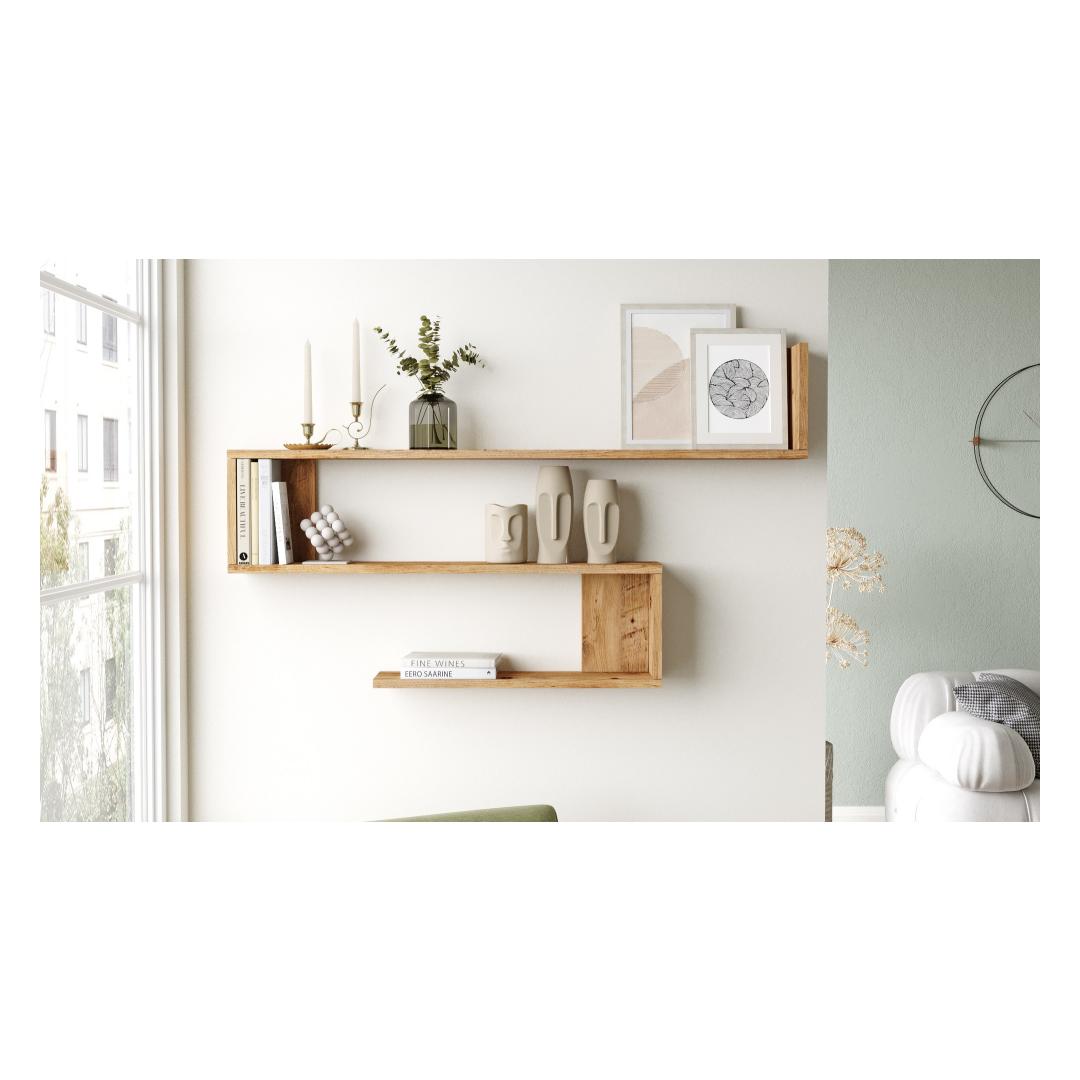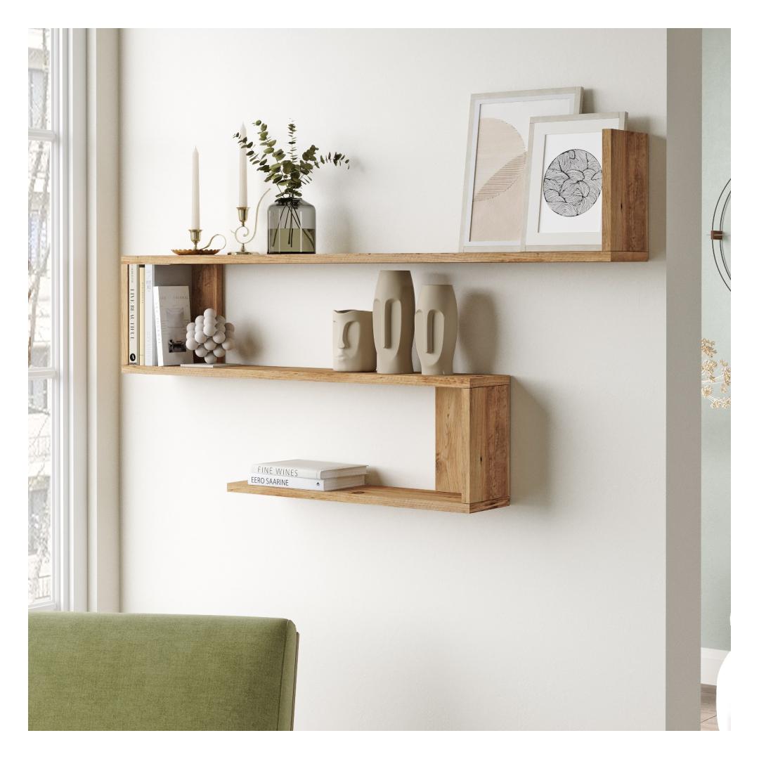 Constructed with 100% melamine coated particle board, this wall shelf is built to withstand the test of time. The sturdy 18 mm thickness ensures superior strength, while the Atlantic Pine color adds a warm and inviting touch to your decor.