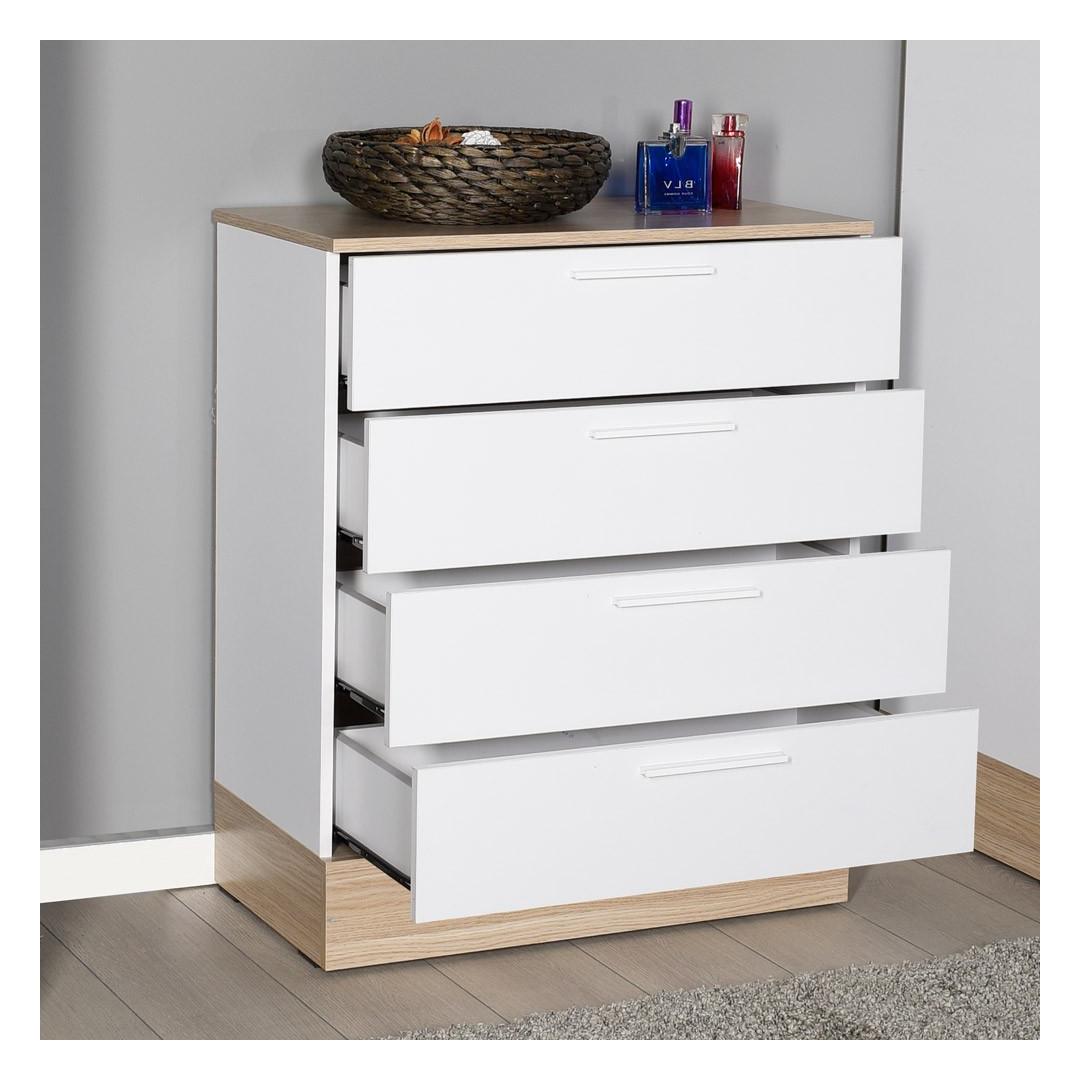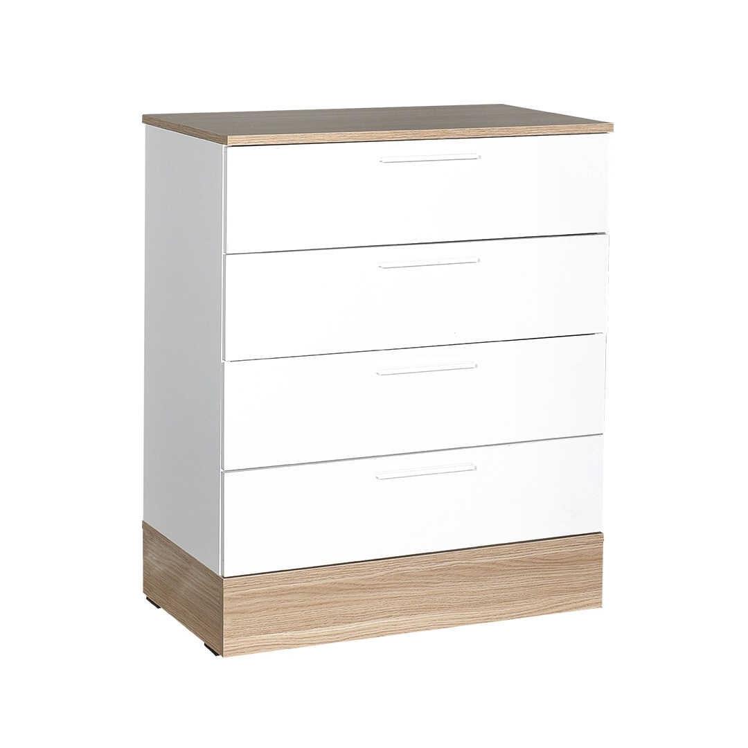 Muunna makuuhuoneesi tyylikkääksi ja siistiksi turvapaikaksi upealla vaatekaapillamme. Tammen ja valkoisen moderni väriyhdistelmä ja tyylikäs muotoilu kohottavat huoneesi ilmettä välittömästi ja tarjoavat samalla runsaasti tilaa kaikille välttämättömille tavaroillesi. Nosta makuuhuoneesi tasoaHyvästi sotkuisuudelle ja tervehdys hienostuneisuudelle vaatekaapin avulla. viiden tilavan laatikon avulla voit säilyttää siististi vaatteitasi, asusteita ja muuta, jolloin makuuhuoneesi pysyy siistinä ja rauhallisena. Tyylikkään muotoilun ja tyylikkään värimaailman ansiosta voit vaivattomasti parantaa huoneesi yleistä estetiikkaa. Valmistettu 100 % melamiinipinnoitetusta lastulevystä, laadukas käsityö tekee tästä vaatekaapista paitsi tyylikkään, myös kestävän ja pitkäikäisen. Laadukkaat materiaalit takaavat, että kaappisi kestää päivittäistä käyttöä ja pysyy moitteettomassa kunnossa vuosien ajan. Tilaa säästävä muotoilu72 cm leveä, 88 cm korkea ja 40 cm syvä kaappi on täydellisen kokoinen mihin tahansa makuuhuoneeseen. Kompaktin muotoilunsa ansiosta se sopii saumattomasti mihin tahansa tilaan, ja mahdollisuus seinäkiinnitykseen tuo lisää vakautta ja turvallisuutta. Tekniset tiedot:Materiaali:Materiaali:100 % melamiinipinnoitettu lastulevyKoko:72 cm (leveys) x 88 cm (korkeus) x 40 cm (syvyys).Väri:Tammi ja valkoinenLokeroiden määrä:5Voidaan kiinnittää seinään lisää vakautta Väri: tammi valkoinen