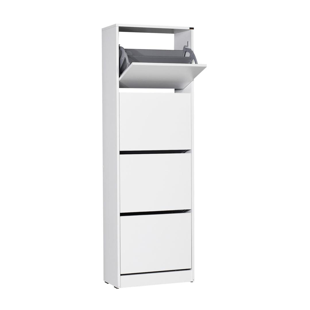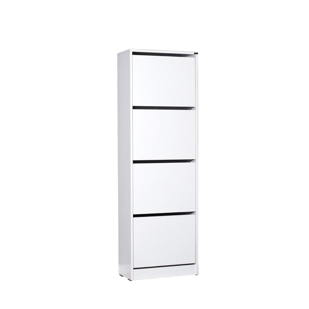 Muunna kotisi tyylikkäällä ja toimivalla kenkäkaapillaOletko kyllästynyt kompastelemaan ympäri taloa hajallaan oleviin kenkiin? sano hyvästit kaaokselle ja toivota järjestys ja tyyli tervetulleeksi elämääsi hienon kenkäkaapin avulla. Tämä upea huonekalu ei ole vain käytännöllinen säilytysratkaisu, vaan myös kaunis lisä mihin tahansa huoneeseen.Korosta tilasi ajattomalla tyylikkyydelläMeidän huolellisesti ja yksityiskohtaisesti muotoiltu kenkäkaappimme on väriltään valkoinen, ja se huokuu eleganssia ja tyylikkyyttä. Sen tyylikäs ja minimalistinen muotoilu sulautuu vaivattomasti mihin tahansa sisustukseen ja tuo kotiisi ajatonta kauneutta. Tehokas paikka kenkäkokoelmasi säilyttämiseenKenkäkaappimme tarjoaa neljän tilavan laatikon ja lukuisten hyllyjen ansiosta runsaasti tilaa koko kenkäkokoelmasi asianmukaiseen säilyttämiseen. Et enää tarvitse etsiä yhteensopivia pareja tai tuhlata aikaa kenkäpinojen penkomiseen. Jokaisen laatikon korkeus on harkitusti suunniteltu 34 cm:n korkeudelle, mikä tarjoaa riittävästi tilaa jopa korkeimmille korkokengillesi tai saappaillesi. Maksimoi tilasi seinäkiinnitysmahdollisuudellaKenkäkaappi ei ole vain säilytysratkaisu, vaan myös tilaa säästävä ihme. Se voidaan helposti asentaa seinälle, jolloin vapautuu arvokasta lattiatilaa ja luodaan sotkuinen ympäristö. Nauti järjestäytyneemmästä ja tilavammasta kodista tämän monipuolisen kaapin avulla. Tekniset tiedot:Materiaali:Materiaali:Materiaali:Materiaali:Materiaali:Materiaali:Materiaali:Materiaali:Materiaali:Materiaali:Materiaali:100 % melamiinipinnoitettua lastulevyäPaksuus:16 mmLeveys:51 cmKorkeus:157 cmSyvyys:26 cmLokeron korkeus:34 cmVäri:ValkoinenKonsepti:Valkoinen.Älä anna kenkiesi vallata kotiasi. Valkoinen: 157,0 cm. Tilaa nyt ja muuta kotisi järjestyksen ja kauneuden paratiisiksi. Väri: valkoinen