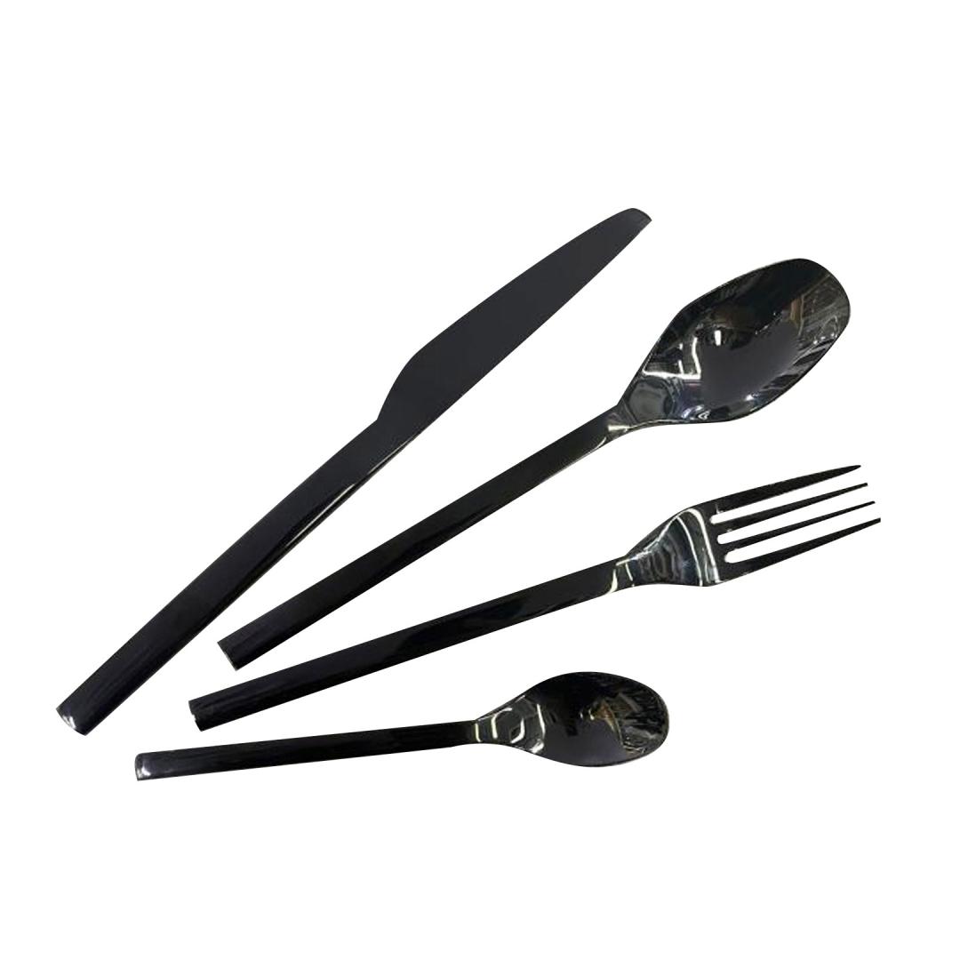 Ruokailuvälineet DUNE 24-osainen, metallia, musta. 6 veistä, 6 haarukkaa, 6 keittolusikkaa, 6 jälkiruokalusikkaa. Söögiriistad DUNE 24-osa, metallist, must. 6 nuga, 6 kahvlit, 6 supilusikat, 6 magustoidulusikat.