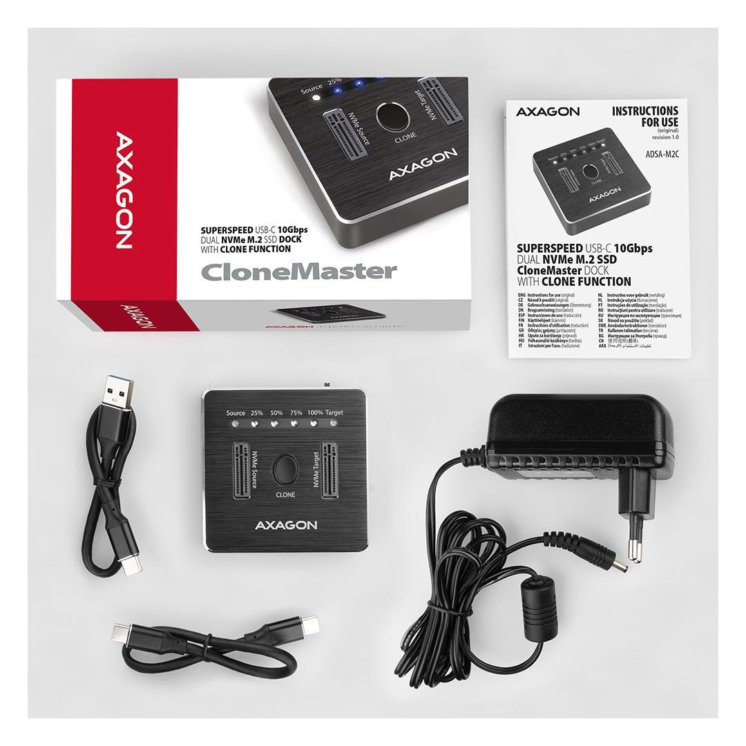 SSD ACC TELAKOINTIASEMA USB-C/2XM.2 NVME ADSA-M2C AXAGON