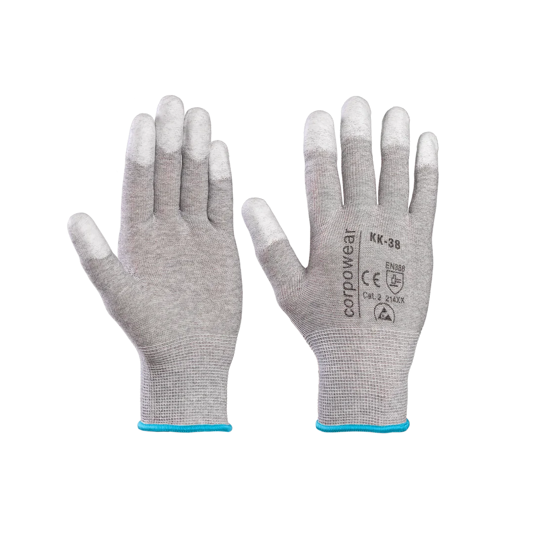 Joustavat kudotut nylon- ja hiilikuituiset työkäsineet, joissa on PU-pinnoitetut sormenpäät, jotka antavat hyvän pidon ja suojaavat mekaaniselta hankaukselta.