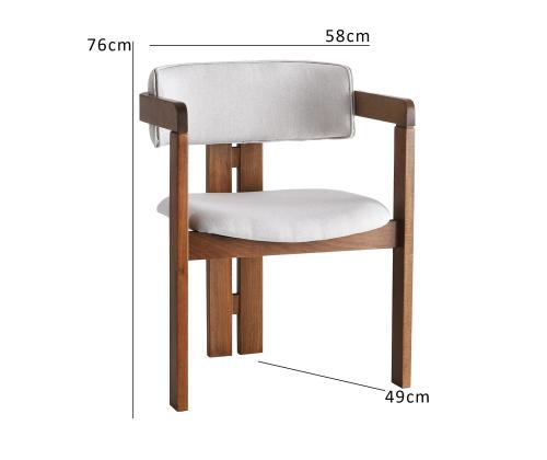 Kas otsite, kuidas lisada oma koju elegantsi ja rafineeritust? Siis vaadake meie kaunist tooli, mis on valmistatud 100% puidust raamist ja kaetud luksusliku linase kangaga. Kreemi ja pähkli värvid sulanduvad ideaalselt, et luua ajatu ese, mis tõstab esile iga ruumi teie kodus.Tõstke oma ruumiSee tool ei ole lihtsalt mööbliese, vaid ka avaldus. Sujuv disain ja kvaliteetsed materjalid teevad sellest hädavajaliku igale, kes hindab stiili ja mugavust. Olgu see teie elutoas, magamistoas või kodukontoris, see tool tõstab koheselt teie ruumi välimust ja tunnet.Mugavus kohtub stiiligaSee tool on mitte ainult visuaalselt atraktiivne, vaid ka uskumatult mugav. Pehme iste ja seljatugi pakuvad ideaalset toetust, muutes selle ideaalseks lõõgastumiseks või tundide kaupa töötamiseks. Te ei taha kunagi lahkuda selle tooli mugavusest, kui olete seda ise kogenud.Tehnilised andmed:Raam: 100% puitIste ja seljatugi: linane kangas / vineerLaius: 58 cmKõrgus: 76 cmSügavus: 49 cmKandevõime: 185 kgTooli kaal: 8.6 kgVärv: Kreem ja pähkelÄrge jätke kasutamata võimalust omada seda kaunist tooli. Hellitage end mööbliesemega, mis mitte ainult ei näe välja ilus, vaid pakub ka ületamatut mugavust. Lisage see oma ostukorvi juba täna ja muutke oma kodu stiilseks pühamuks. Värv: Cream Walnut