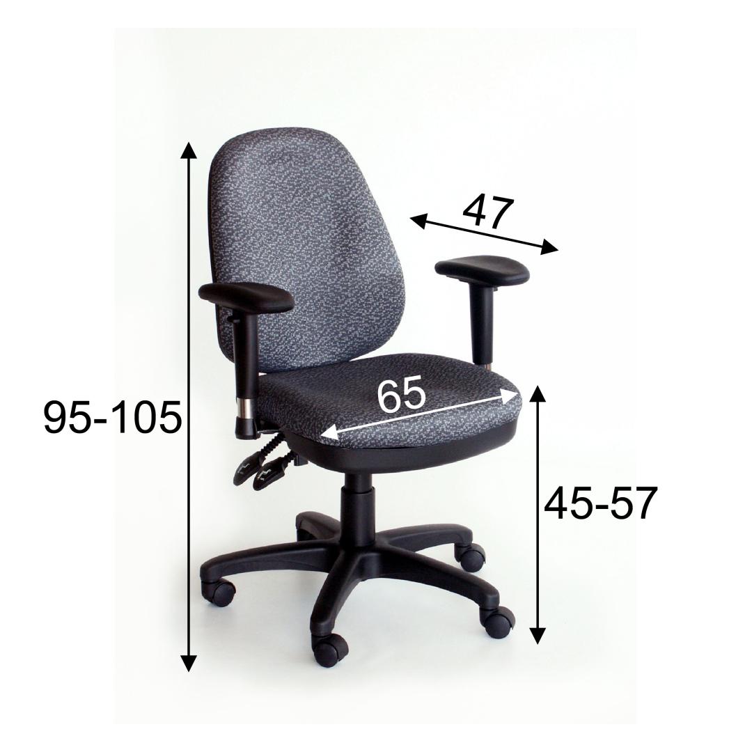 Task chair SAVONA grey. The seat and backrest are covered with grey polyester fabric, 50 000 Martindale's. The frame is black. Pneumatic seat height adjustment. The height and tilt of the backrest are adjustable. The armrests are made of polyurethane. The height and distance of the armrests are adjustable. The base is made of black nylon. The chair has rubber castors, pin: 11mm. The seat height is 43-55cm, seat depth 48cm, seat width 49cm. The dimensions of the product are 65x47xH96-106cm. The weight capacity is 120kg.