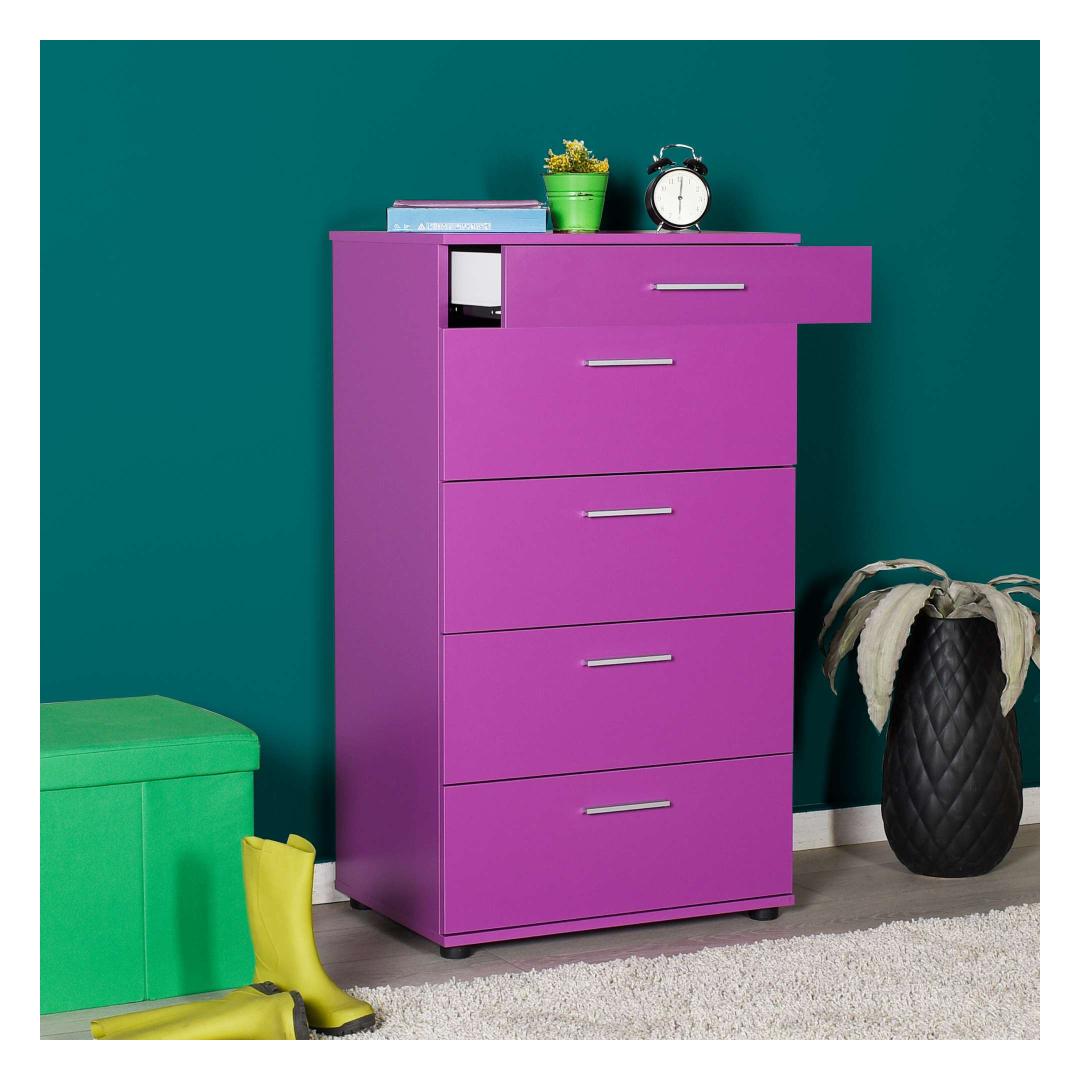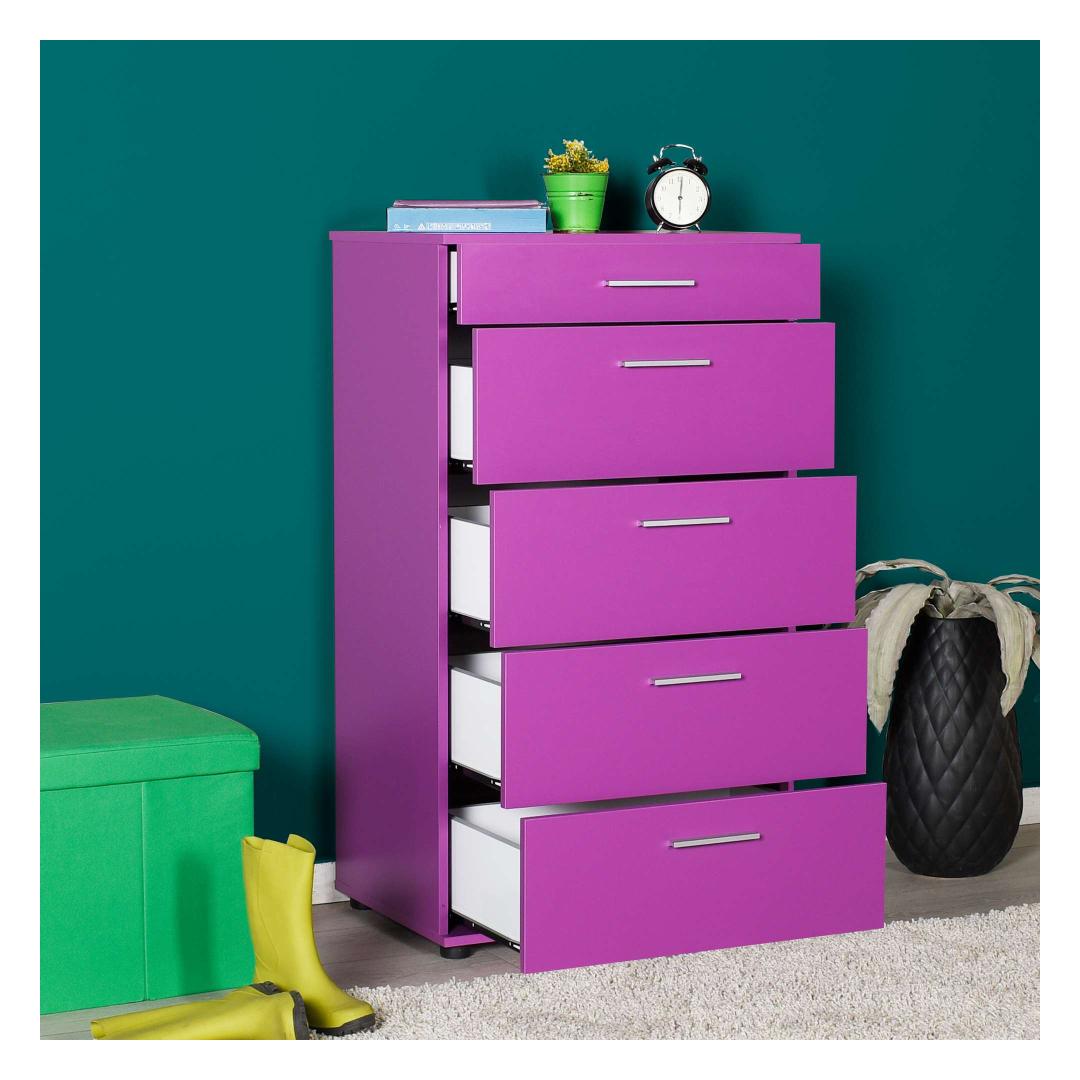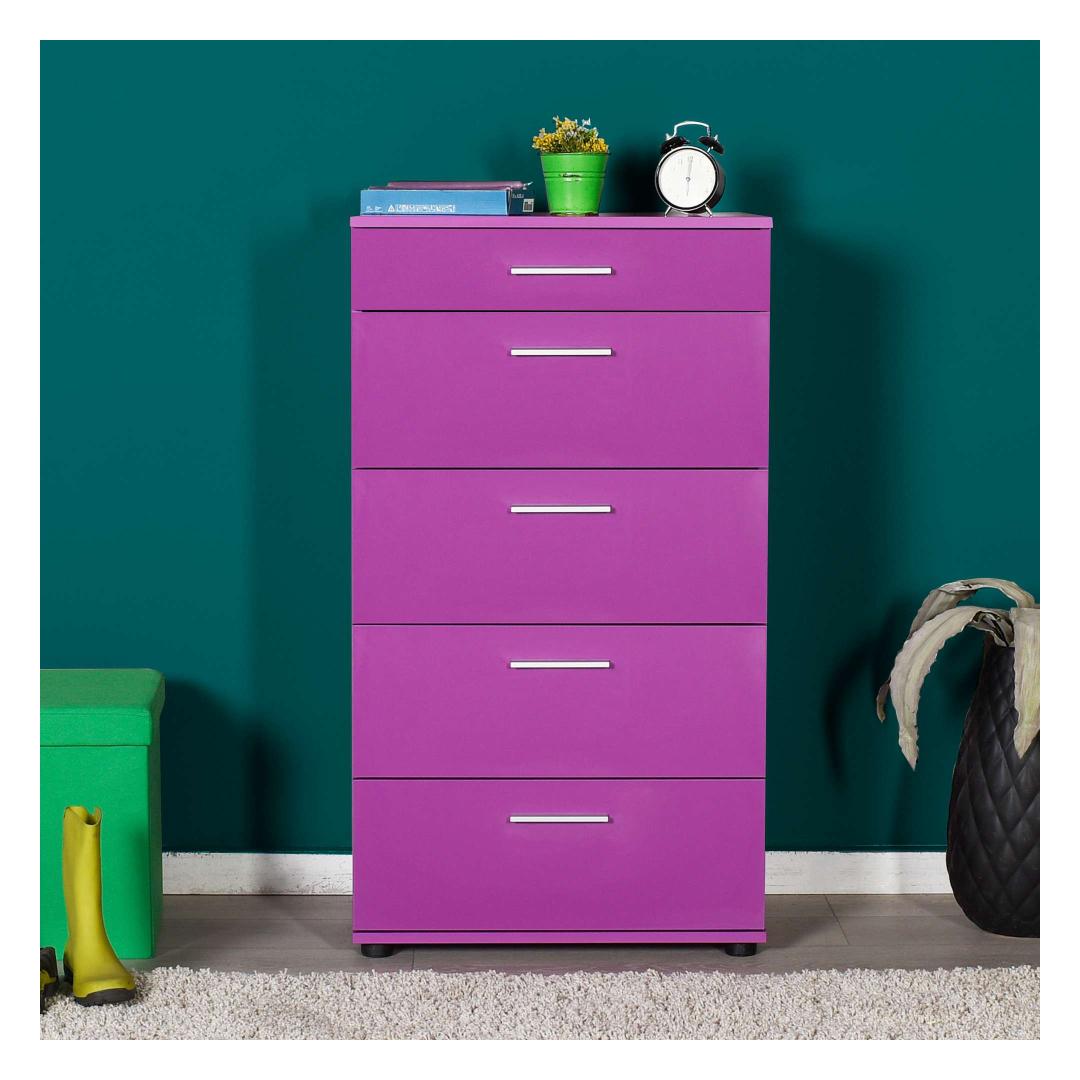 Muunna makuuhuoneesi tyylikkääksi ja järjestäytyneeksi turvapaikaksi upean violetin lipaston avulla. Tämä 100 % melamiinipinnoitetusta lastulevystä valmistettu lipasto on paitsi kestävä myös uskomattoman tyylikäs. Tyylikäs muotoilu ja elinvoimainen violetti väri kohottavat huoneesi ilmettä välittömästi ja lisäävät tyylikkyyttä ja hienostuneisuutta.Ole tyylikkäästi järjestäytynytTämä lipasto tarjoaa runsaan laatikoston ja lukuisten hyllyjen ansiosta runsaasti säilytystilaa kaikille vaatteillesi ja asusteillesi. Sano hyvästit sotkuisuudelle ja tervehdi kauniisti järjestettyä makuuhuonetta. Lipasto voidaan myös kiinnittää seinään, mikä lisää vakautta ja turvallisuutta, joten se on käytännöllinen ja toimiva lisä mihin tahansa huoneeseen.Nosta sisustuksesi seuraavalle tasolleTämän lipaston runsas violetti väri tuo huoneeseesi väriloiston, joka luo rohkean ja huomiota herättävän keskipisteen. Olipa tyylisi sitten nykyaikainen, eklektinen tai perinteinen, tämä lipasto sulautuu saumattomasti olemassa olevaan sisustukseesi ja lisää persoonallisuutta ja tyyliä.Tekniset tiedot:Materiaali:100 % melamiinipinnoitettu lastulevyPaksuus:16 mmLeveys:68 cmKorkeus:108 cmKorkeus:44 cmVäri:Violetti Väri: violetti