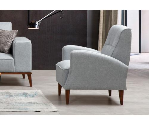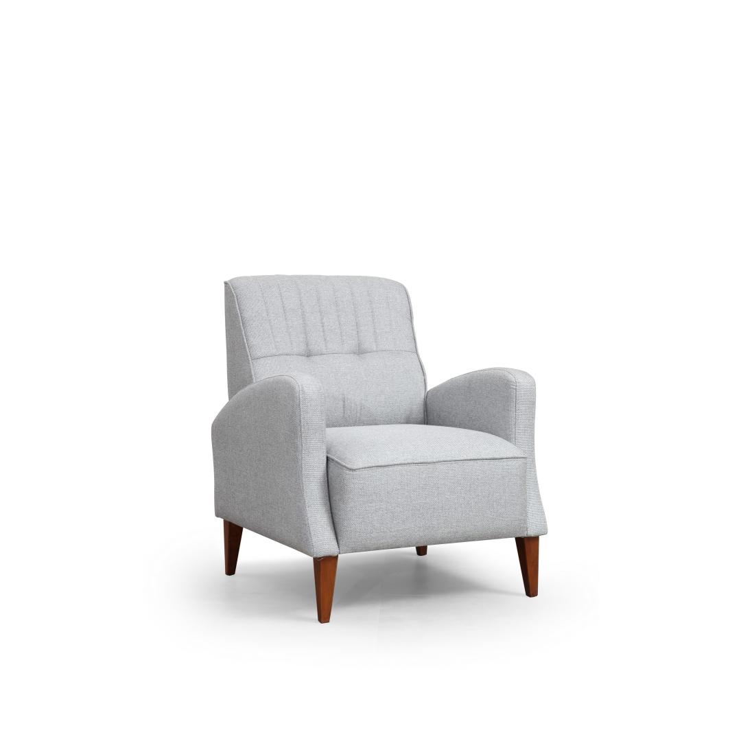 Crafted with precision, our Wing Chair boasts a sturdy frame made of high-quality Beech Wood and Chipboard. The walnut wooden legs add a touch of sophistication, elevating the overall aesthetic of the chair. The 100% Polyester fabric in a stunning shade of grey exudes timeless elegance, making it a perfect fit for any interior style.
