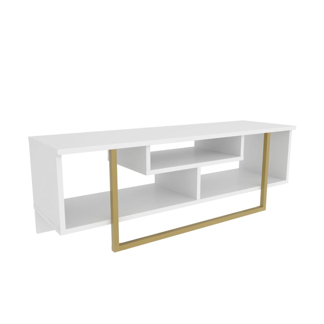 Korosta asuintilaasi lumoavalla TV-kaukosäätimelläMuuta olohuoneesi ylelliseksi asuintilaksi upealla TV-kaukosäätimellämme. Se on suunniteltu glamourin käsitteellä, ja se lisää tyylikkyyttä mihin tahansa huoneeseen. Sen tyylikäs ja moderni muotoilu herättää välittömästi vieraiden huomion ja tekee siitä viihdekeskuksesi keskipisteen.Verraton laatu ja kestävyysTämä 100 % melamiinipinnoitetusta lastulevystä valmistettu TV-teline on rakennettu kestämään. sen 18 mm:n paksuus takaa lujuuden ja vakauden, ja se tarjoaa luotettavan alustan televisiollesi ja muille medialaitteillesi. Voit olla varma, että tämä kolmijalka kestää aikaa ja säilyttää kauneutensa tulevina vuosina. Kullan ja valkoisen täydellinen yhdistelmäKullan ja valkoisen yhdistelmä luo silmiinpistävän kontrastin ja lisää hienostuneisuutta olohuoneeseesi. Kultaiset aksentit tuovat ylellisyyttä, kun taas valkoinen viimeistely lisää ajatonta eleganssia. Tämä harmoninen väriyhdistelmä täydentää vaivattomasti mitä tahansa olemassa olevaa sisustusta, joten se on monipuolinen lisä kotiisi. Paranna viihdekokemustasiTämä TV-konsoli ei tarjoa ainoastaan visuaalisesti houkuttelevaa muotoilua, vaan myös käytännöllisyyttä ja toiminnallisuutta. Sen leveys on 120 cm, syvyys 35,2 cm ja korkeus 40,2 cm, joten siinä on runsaasti tilaa televisiolle, pelikonsoleille, äänentoistojärjestelmille ja muille tärkeille mediatarvikkeille. Pidä olohuoneesi siistinä ja sotkuisena sisäänrakennettujen säilytyskaappien avulla, joissa voit säilyttää siististi DVD-levyjä, kaukosäätimiä ja muita tarvikkeita. Tekniset tiedot:Materiaali:Materiaali:Materiaali:Materiaali:Materiaali:Materiaali:Materiaali:Materiaali:Materiaali:Materiaali:Materiaali:Materiaali:Materiaali:100 % melamiinipinnoitettu lastulevyPaksuus:18 mmLeveys:120 cmKorkeus:35,2 cmKorkeus:40,2 cmVäri:kulta ja valkoinenKonsepti:Glam Väri: Kullanvalkoinen
