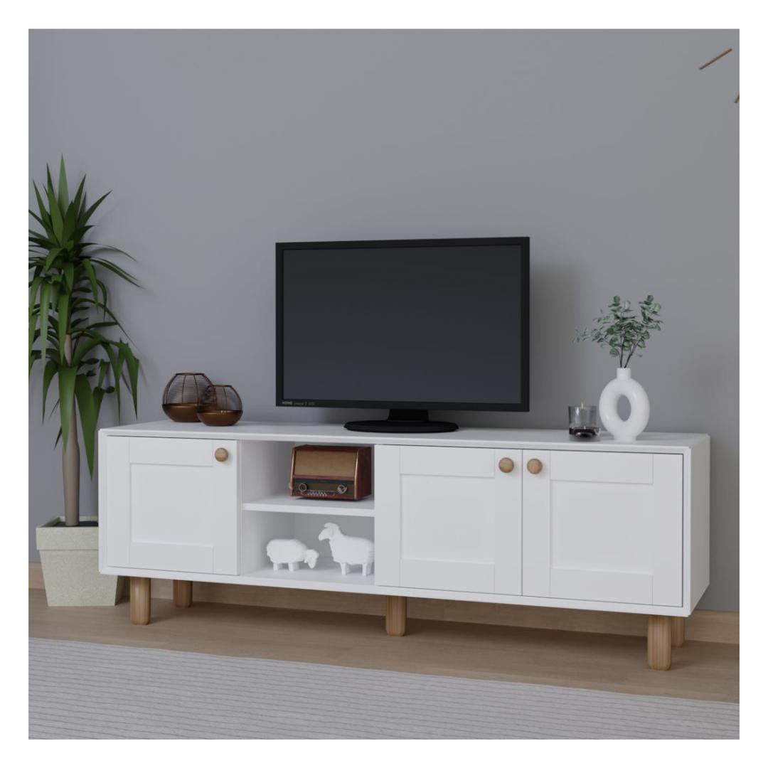 Etsitkö täydellistä TV-telineen kokonaisuutta olohuoneeseesi? Meidän upea TV-telineemme on valmistettu 100-prosenttisesti melamiinipinnoitetusta lastulevystä. Tämä jalusta ei ole pelkkä huonekalu, vaan tyylin ja hienostuneisuuden ilmentymä. Tyylikäs muotoilu kotiisiTyylikkään valkoisen värinsä ja modernin muotoilunsa ansiosta tämä TV-teline kohottaa välittömästi olohuoneesi ilmettä. 18 mm:n paksuus takaa kestävyyden ja vakauden, ja 160 cm:n leveys tarjoaa runsaasti tilaa televisiolle ja muille viihdetarvikkeille. Järjestä tilasi Sano hyvästit sotkuisuudelle, kiitos tämän TV-telineen, jossa on runsaasti hyllyjä. Pidä DVD-levyt, pelikonsolit ja muut tavarat siististi järjestyksessä ja helposti saatavilla. Jalusta voidaan myös kiinnittää seinään, mikä lisää vakautta ja turvallisuutta. Muunna olohuoneesiMuuta olohuoneesi tyylikkääksi ja toimivaksi tilaksi tämän TV-telineen avulla. Tämä jalusta on täydellinen keskipiste viihdealueellesi, olipa kyse sitten suosikkiohjelmasi katsomisesta tai elokuvaillan järjestämisestä ystävien kanssa. Tekniset tiedot:Materiaali:100 % melamiinipinnoitettu lastulevyPaksuus:18 mmLeveys:160 cmKorkeus:56 cmKorkeus:40 cmVäri:Valkoinen Väri: valkoinen
