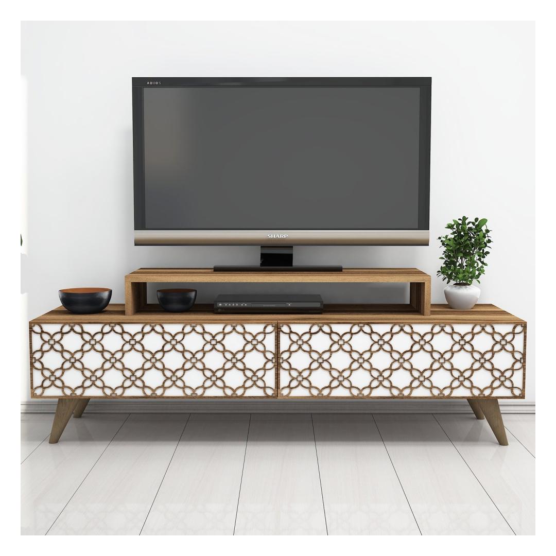 Välistage oma eluruumi kaasaegse ja stiilse teleripuldigaMuutke oma elutuba meie peen teleripuldi abil paeluvaks ja kutsuvaks ruumiks. See modernsete ja traditsiooniliste elementide täiusliku seguga disainitud ese tõstab teie kodu esteetilist atraktiivsust vaevata. Võrratu vastupidavus ja kvaliteet100% melamiiniga kaetud puitlaastplaadist valmistatud teleripult on valmistatud kestma. 18 mm paksus tagab erakordse tugevuse, samas kui 4 mm cnc-reljeef lisab elegantsi. Võite olla kindel, et see statiiv peab vastu ja jääb teie kodu keskpunktiks aastateks.Funktsionaalne ja mitmekülgne disainTänu arvukatele riiulitele pakub see televiisoripult piisavalt ruumi kõigi teie meediaseadmete, dvd-de ja muude oluliste esemete jaoks. Hoidke oma elutuba korras ja organiseeritud, esitledes samal ajal avatud riiulitel oma lemmikdekoratiivseid esemeid. Stiilne ja pilkupüüdevPähklipuu ja valge värvi kombinatsioon loob silmatorkava kontrasti, lisades igasse ruumi elegantsi. Kaasaegne disain koos vihje uuenduslikkusega avaldab kindlasti muljet teie külalistele ja teeb teie kodu sisustuses silmapaistva avalduse. Lihtne paigaldamine ja paindlikkusMeie televiisoripulka saab hõlpsasti seinale kinnitada, tagades stabiilsuse ja ohutuse. Olenemata sellest, kas eelistate seda vabalt seisvat või paigaldatud, pakub see statiiv teile paindlikkust, et valida teie ruumi jaoks ideaalne seadistus. Tehnilised üksikasjad:Materjal: Materjal: materjal: 100% melamiiniga kaetud puitlaastplaatPaksus: 18 mmCNC reljeef: 4 mmJalad: PlastistLaius: 140 cmKõrgus: 48,8 cmSügavus: 41. 8 cmVärv: Pähklipuu ja valgeKontseptsioon: Kaasaegne - uudsus, Ameerika traditsiooniline, Damask, Lill Värv: Walnut White