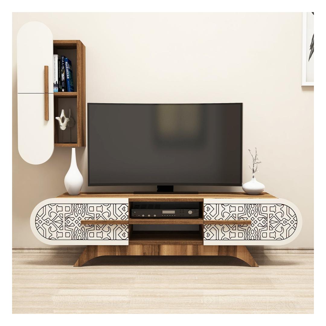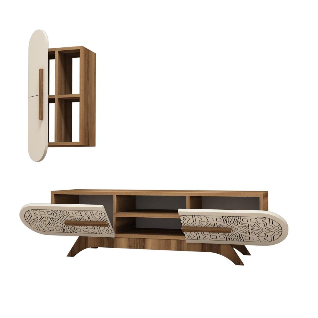 TV laud Defne - Walnut, Cream