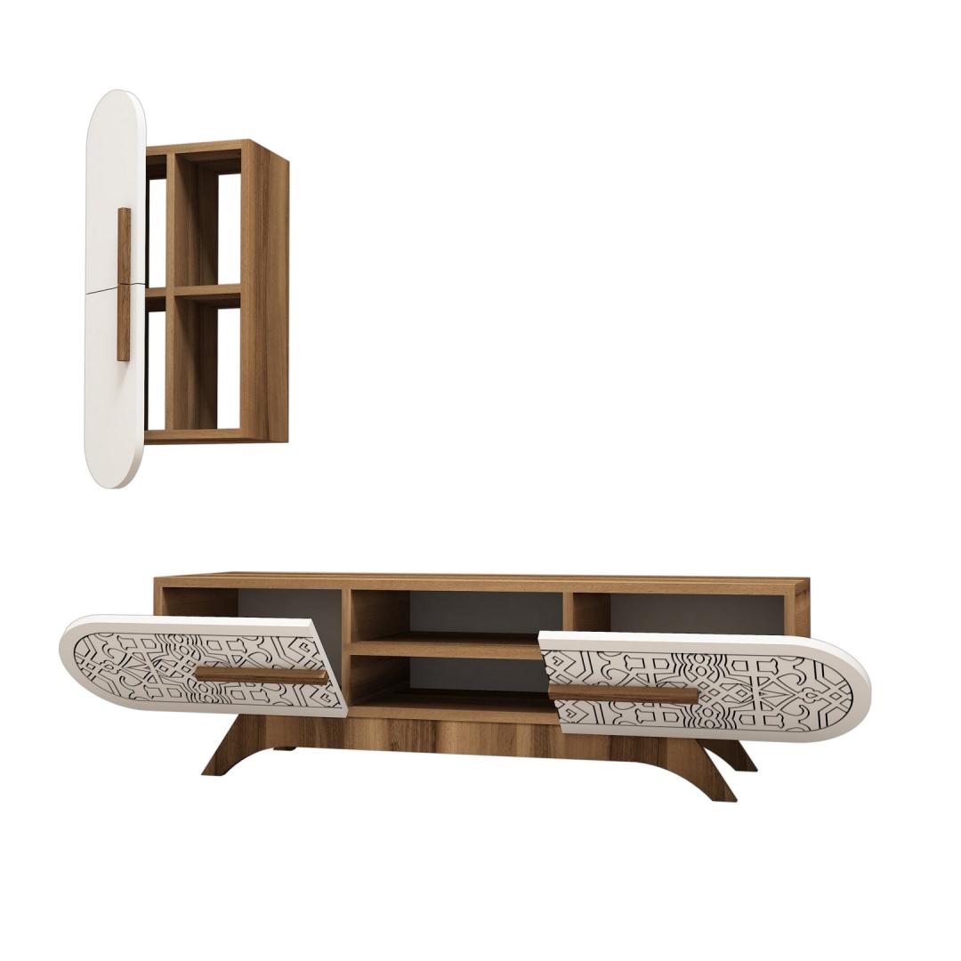 Transformeeri oma eluruum kaasaegse ja stiilse televiisorigaKas olete väsinud oma igavast ja vananenud elutoast? uuendage oma ruumi meie uimastava teleriga, mis ühendab endas moodsa disaini ja Ameerika traditsioonilise võlu. Tänu oma elegantsetele joontele ja uuenduslikele funktsioonidele saab sellest telerist kindlasti teie kodu keskpunkt. Loo stiilne ja organiseeritud meelelahutuskeskusMeie televiisor on valmistatud 100% melamiiniga kaetud puitlaastplaadist, mis tagab vastupidavuse ja pikaealisuse. 18 mm paksus lisab seadmele tugevust, mistõttu sobib see ideaalselt teie televiisori ja muude oluliste meelelahutusvahendite hoidmiseks. Seade on varustatud arvukate riiulitega, mis pakuvad piisavalt ruumi teie dvd-mängijale, mängukonsoolidele ja muule. Täiendab teie sisekujundust pähklipuu ja valge värvigaPähklipuu ja valgete värvide kombinatsioon annab sellele televiisorile kaasaegse ja rafineeritud välimuse. Kontrastsed värvid lisavad elegantsi igasse ruumi, muutes selle ideaalseks täienduseks teie moodsale kodule. Maksimeerida oma ruumi seinale paigaldatava disainigaMeie teler ei paku mitte ainult stiili ja funktsionaalsust, vaid seda saab ka seinale kinnitada, säästes väärtuslikku põrandapinda. Seinale paigaldatav disain loob puhta ja segadusteta välimuse, andes teie elutoale avaruse ja organiseeritud tunnetuse. Tehnilised üksikasjad:Materjal: Materjal: Materjal: Materjal: Materjal: Materjal: Materjal: Materjal: materjal: 100% melamiiniga kaetud puitlaastplaatPaksus: 18mmTelerikomplekti suurus: Laius: 145cm, kõrgus: 37cm, sügavus: 35cm.Seina riiuli suurus: Laius: 35cm, kõrgus: 60cm, sügavus: 20cmKapi ukse kõrgus: 80cmVärv: Pähklipuu ja valgeUuendage oma eluruumi juba täna meie moodsa ja stiilse teleriga. Kogege funktsionaalsuse ja esteetika täiuslikku segu ning muutke oma kodu stiili ja mugavuse paradiisiks. Värv: Walnut White