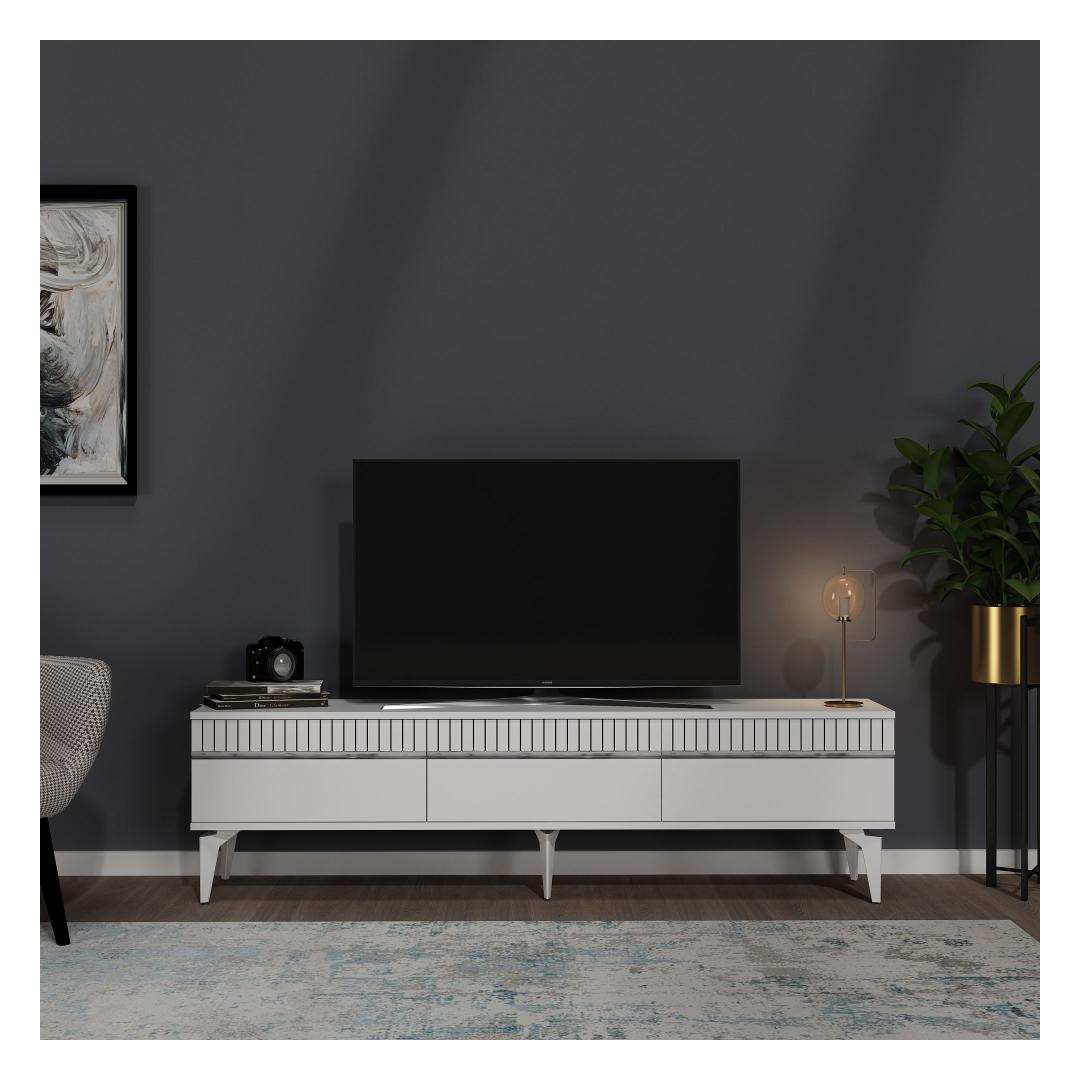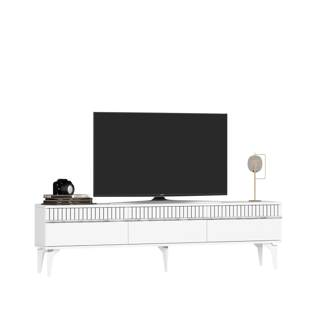 Muunna olohuoneesi tyylikkääksi ja organisoiduksi tilaksi modernilla TV-kaukosäätimellämme. Tämä 100-prosenttisesti melamiinipinnoitetusta lastulevystä valmistettu TV-konsoli on paitsi kestävä myös tyylikäs ja tyylikäs. Valkoisen ja hopean väriyhdistelmä lisää tyylikkyyttä mihin tahansa huoneeseen. Järjestä viihdetilasi Sano hyvästit sotkulle ja hei järjestykselle tämän TV-telineen lukuisilla hyllyillä. Pidä DVD-levyt, pelikonsolit ja kaukosäätimet siististi järjestyksessä, jotta olohuoneesi pysyy siistinä ja järjestyksessä. Leveys on 180 cm ja korkeus 44,6 cm, joten tämä TV-teline on täydellinen lisä mihin tahansa moderniin kotiin. Tyylikäs muotoilu ja hopeiset korostukset nostavat olohuoneen tyyliä ja tekevät vaikutuksen vieraisiin. Helppo asentaaTämä TV-teline voidaan helposti asentaa seinälle vakauden ja turvallisuuden takaamiseksi. Jalkojen 19 cm:n korkeus varmistaa, että televisiosi on täydellisellä katselukorkeudella mukavaa ja nautinnollista katselua varten. Päivitä olohuoneesi modernilla TV-telineellämme jo tänään ja koe tyylin ja toiminnallisuuden täydellinen yhdistelmä. Tekniset tiedot:Materiaali:Materiaali:Materiaali:Materiaali:Materiaali:Materiaali:Materiaali:Materiaali:Materiaali:Materiaali:Materiaali:Materiaali:Materiaali:Materiaali:100 % melamiinipinnoitettua lastulevyäLeveys:180 cmKorkeus:44,6 cmKorkeus:29,6 cmKorkeus:19 cmVäri:Valkoinen ja hopea Väri: Valkoinen hopea