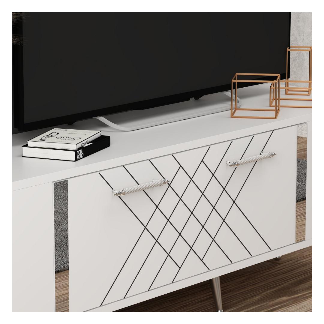 Paranna asuintilaasi modernilla ja tyylikkäällä TV-kaukosäätimelläParanna olohuoneesi tyylikkäällä ja modernilla TV-kaukosäätimellä. Tämä modernilla ja innovatiivisella konseptilla suunniteltu TV-konsoli on täydellinen lisä mihin tahansa kodin sisustukseen. Sen ainutlaatuinen argyle-kuvio lisää eleganssia ja hohtoa olohuoneeseesi, tehden siitä huoneesi keskipisteen.Runsaasti säilytystilaa viihdetarpeisiisiTämä TV-konsoli tarjoaa runsaasti hyllyjä ja lisää säilytystilaa, joten siinä on runsaasti tilaa kaikkien viihdelaitteidesi järjestämiseen ja esillepanoon. DVD-kokoelmastasi pelikonsoleihin ja äänentoistojärjestelmiin kaikki on siististi säilytettävissä ja helposti saatavilla. Sano hyvästit sotkuisuudelle ja hei siistille ja siistille olohuoneelle. Tukeva, laadukas rakenneTämä 100-prosenttisesti melamiinipinnoitetusta lastulevystä valmistettu TV-teline on tehty kestämään. sen 18 mm:n paksuus takaa lujuuden ja kestävyyden, ja valkoinen ja hopea -väriyhdistelmä tuo tyylikkyyttä mihin tahansa huoneeseen. Jalkojen 15 cm:n korkeus takaa vakauden ja estää heilumisen, mikä takaa televisiosi ja muun elektroniikan turvallisuuden. Tekniset tiedot: Tuotetyyppi: TV-telineMateriaali. Runsaan säilytystilan, tukevan rakenteen ja tyylikkään muotoilun ansiosta se on täydellinen lisä mihin tahansa kotiin. Älä missaa tätä tilaisuutta muuttaa asuintilasi tyylikkääksi ja järjestäytyneeksi retriitiksi. Väri: Valkoinen hopea