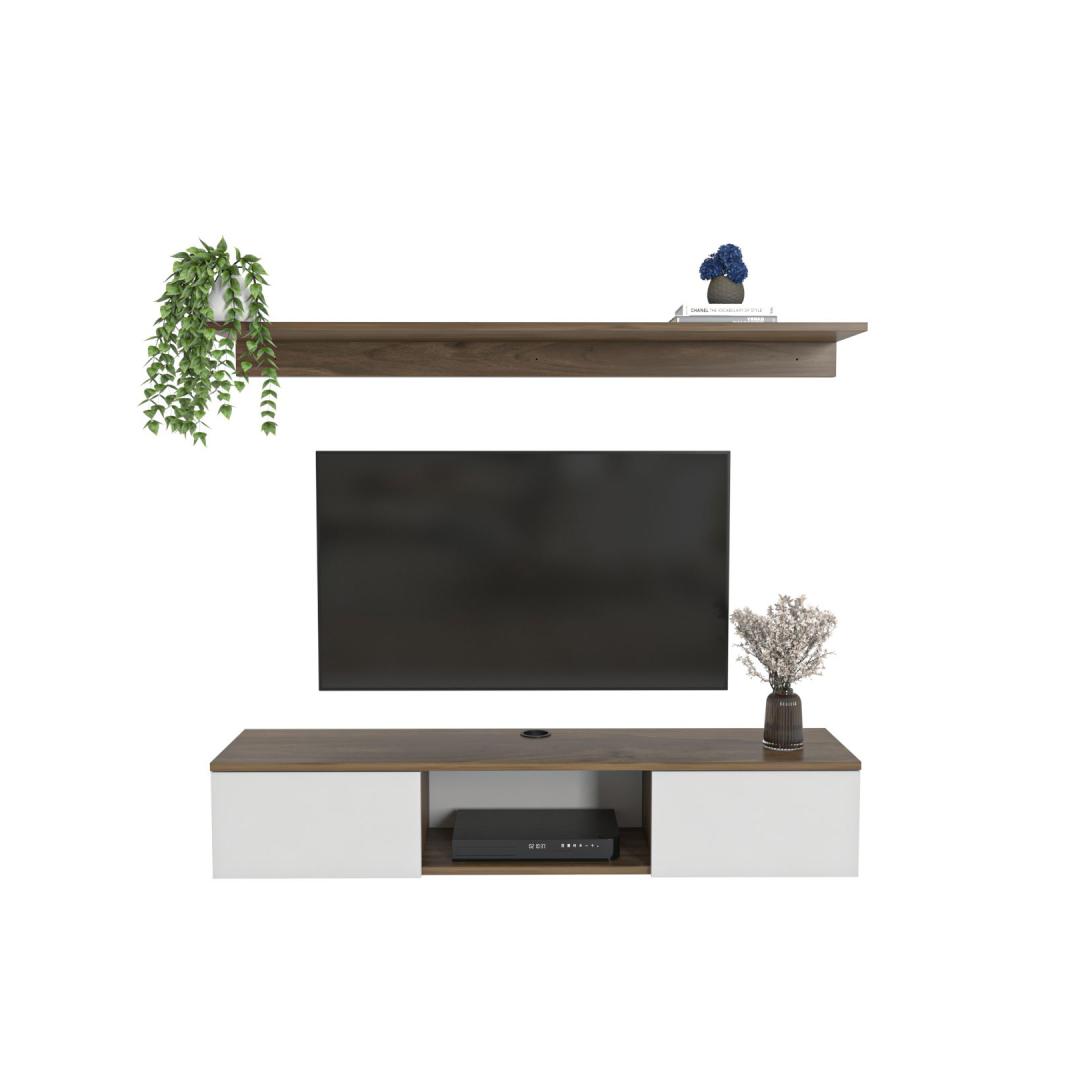 Muuda oma elutuba stiilseks ja organiseeritud ruumiks meie hämmastava telerialuse abil. See modernne ese ei ole lihtsalt mööbel, vaid ka elegantsi ja rafineerituse väljendus. Pähkli ja valge värvi kombinatsioon lisab igasse ruumi klassi, samas kui sujuv disain täiendab igasugust sisustust.Tõsta oma eluruumiÜtle hüvasti segadusele ja tere organiseeritusele meie telerialuse abil. Piisava hoiuruumiga kõigi sinu meediaesemete jaoks hoiab see alus sinu elutoa korras ja puhtana. 18 mm paksune 100% melamiinkattega puitlaastplaat tagab vastupidavuse ja pikaealisuse, nii et saad seda eset nautida aastaid.Tehke avaldusTehke julge avaldus meie telerialusega, mis on nii funktsionaalne kui ka moekas. 140 cm laius pakub piisavalt ruumi sinu teleri ja teiste elektroonikaseadmete jaoks, samas kui 25,6 cm kõrgus ja 32 cm sügavus annavad sujuva ja voolujoonelise ilme. Olgu see filmiõhtu või lihtsalt kodus lõõgastumine, see telerialus on sinu elutoa keskpunkt.Tehnilised andmed:Materjal: 100% melamiinkattega puitlaastplaatPaksus: 18 mmLaius: 140 cmKõrgus: 25,6 cmSügavus: 32 cmVärv: Pähkel ja valge Värv: Walnut White
